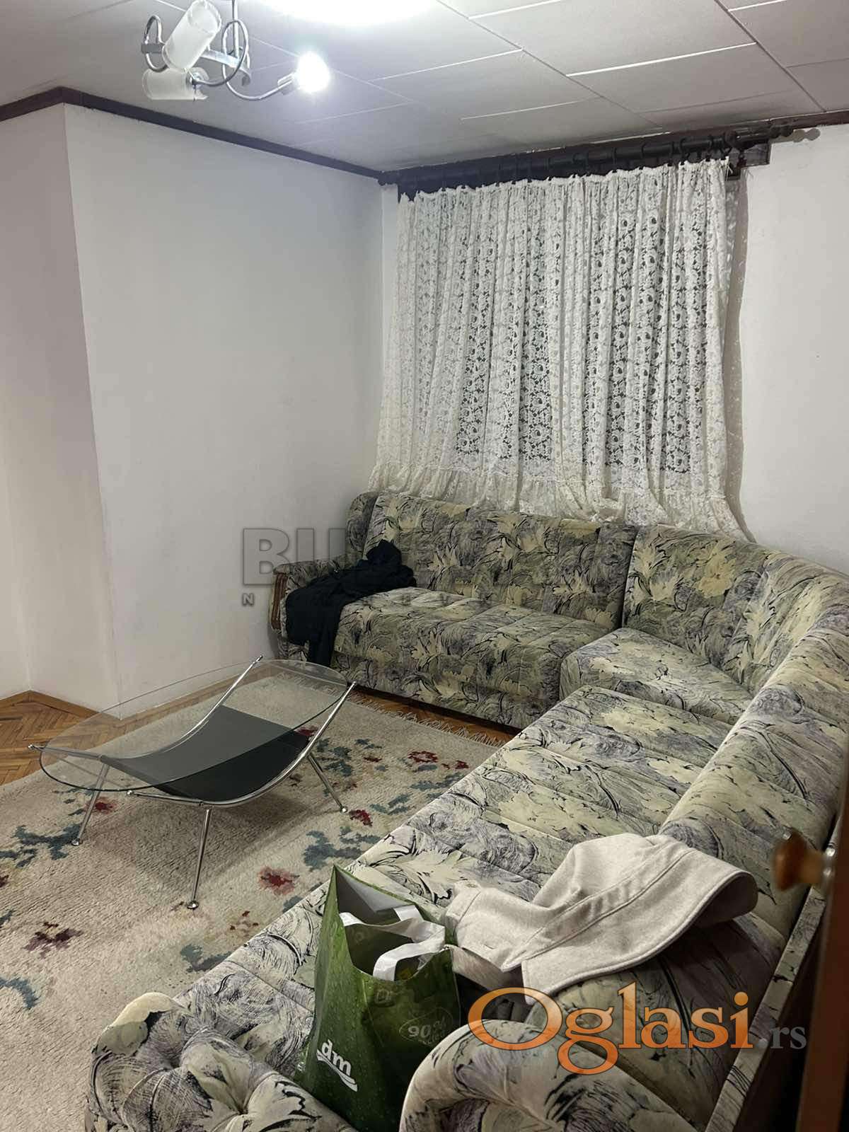 Izdaje se stan površine 50m2 na četvrtom spratu u zgradi bez lifta. Sastoji se od ulaznog hodnika, trpezarije sa kuhinjom, dnevne sobe, spavaće sobe, kupatila, toaleta i terase. Grejanje je TA. Komplet je opremljen nameštajem i svom potrebnom belom tehnikom. Lepo je osvetljen i orijentisan. Izdaje se ozbiljnim zakupcima na duži vremenski period. Obavezan depozit u visini jedne mesečne kirije.