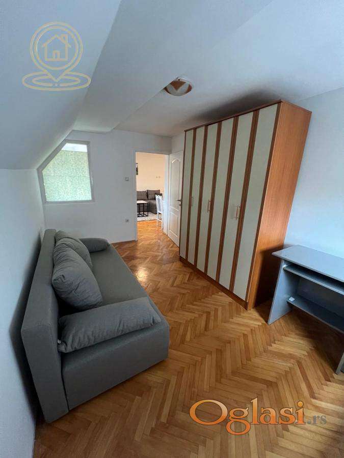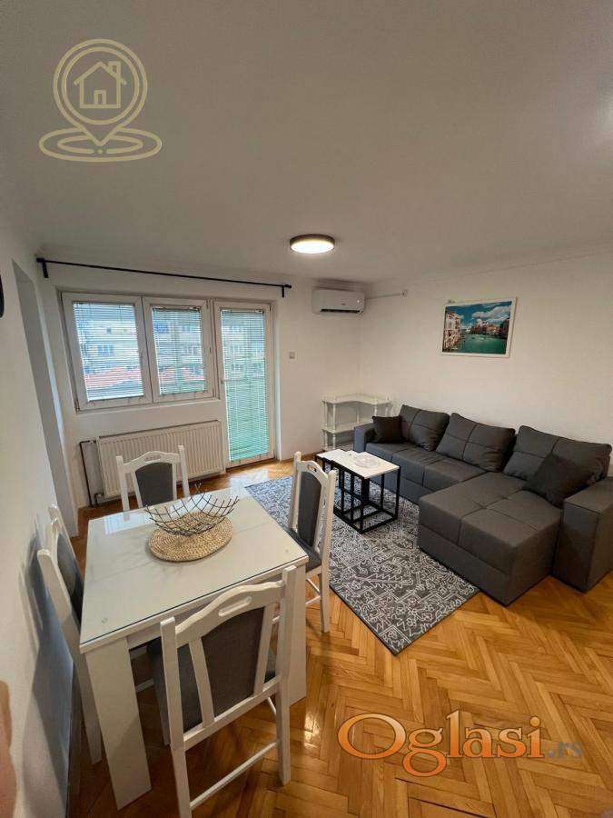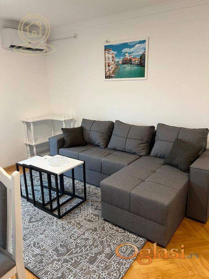 Izdaje se dvosoban stan od 42 m², potpuno namešten i renoviran, smešten na trećem spratu uredne stambene zgrade, na samo 900 metara od centra grada. Stan je odlično orijentisan i vrlo svetao, što ga čini prijatnim za boravak tokom cele godine. Raspored je funkcionalan i praktičan: prostrana dnevna soba, odvojena spavaća soba, kuhinja sa trpezarijom, kupatilo i terasa. Zahvaljujući dobroj izolaciji i savremenim instalacijama, stan ima niske mesečne troškove. Stan je idealan za par, jednu osobu ili poslovne ljude koji žele moderno uređen prostor u mirnom okruženju, a ipak blizu centra. Agencijska provizija u skladu sa opštim uslovima poslovanja.