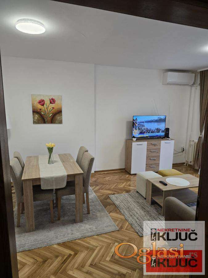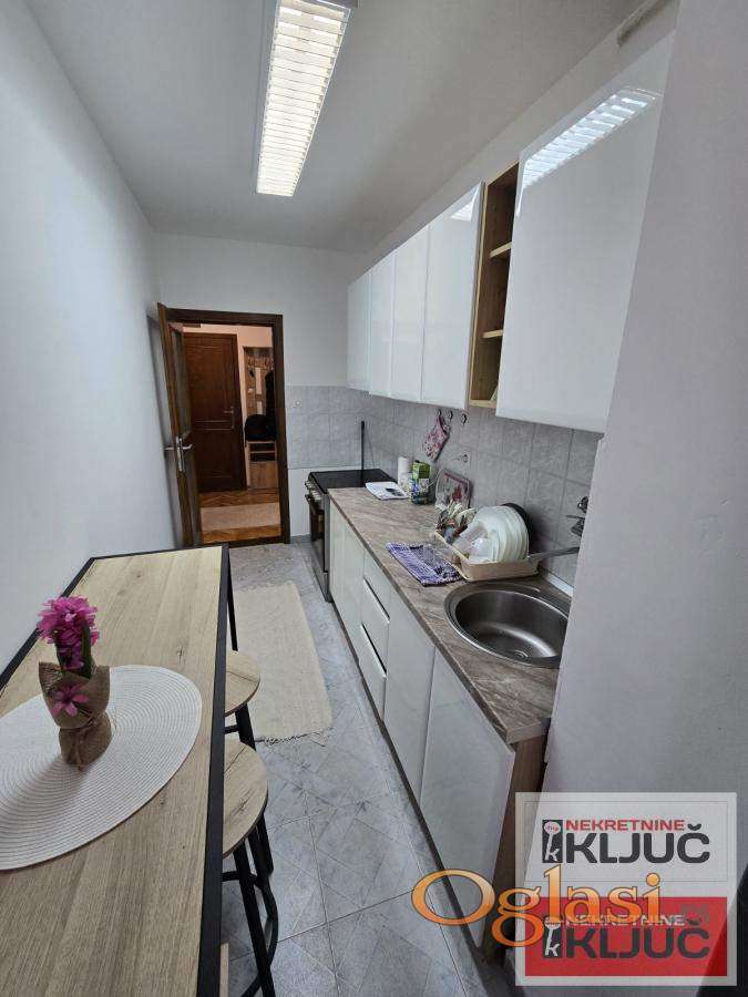 U ulici Starine Novaka izdajemo renoviran dvosoban stan.Stan je komplet renoviran i odmah je useljiv.Dnevni boravak sa trpezarijom,kuhinja je odvojena ,sa prirodnim provetravanjem,spavaća soba,kupatilo,terasa.