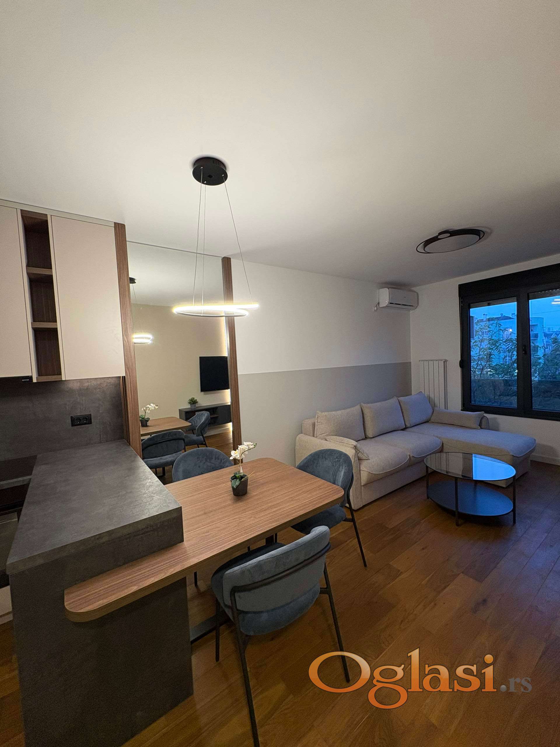 Stan je nikada useljavan, opremljen novim nameštajem, belom tehnikom i klimom, sa pažljivo biranim detaljima koji pružaju maksimalan komfor i funkcionalnost.