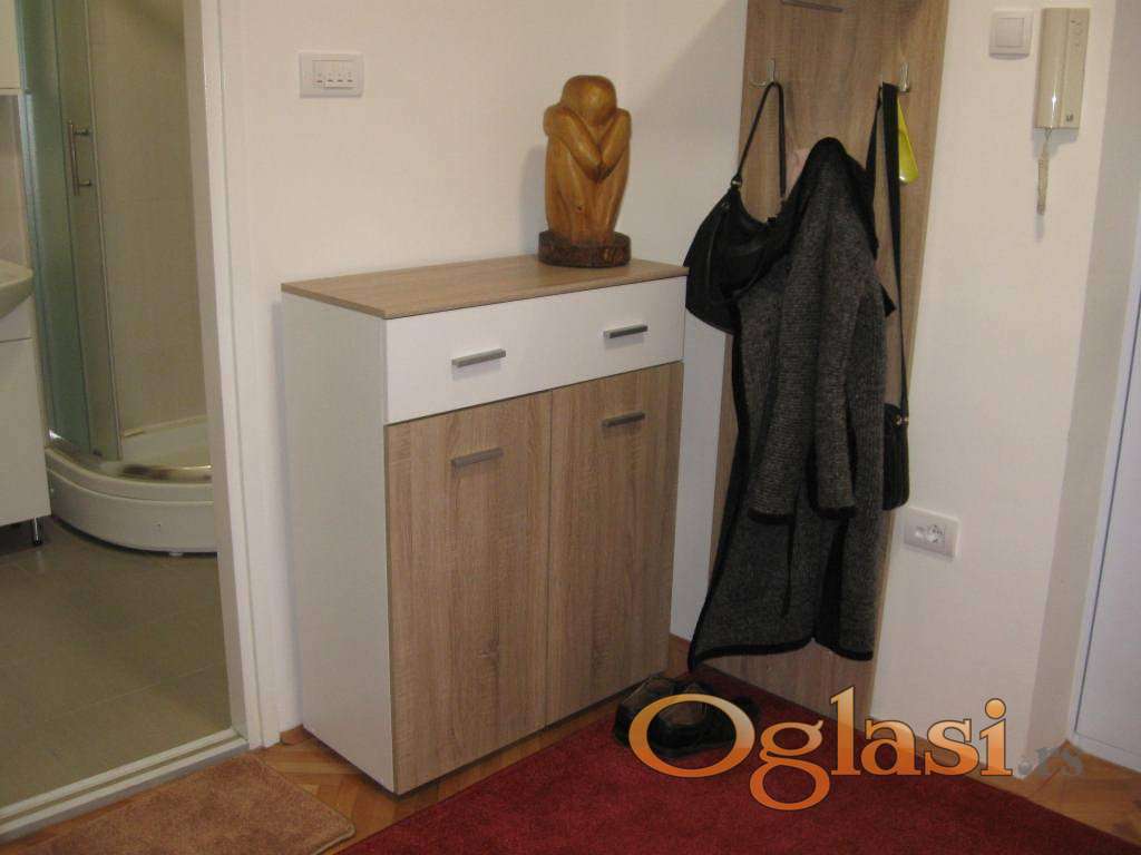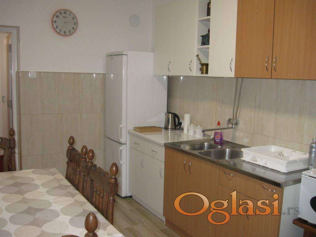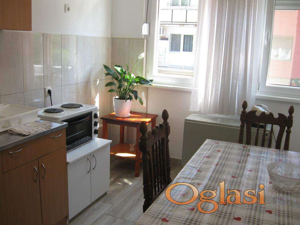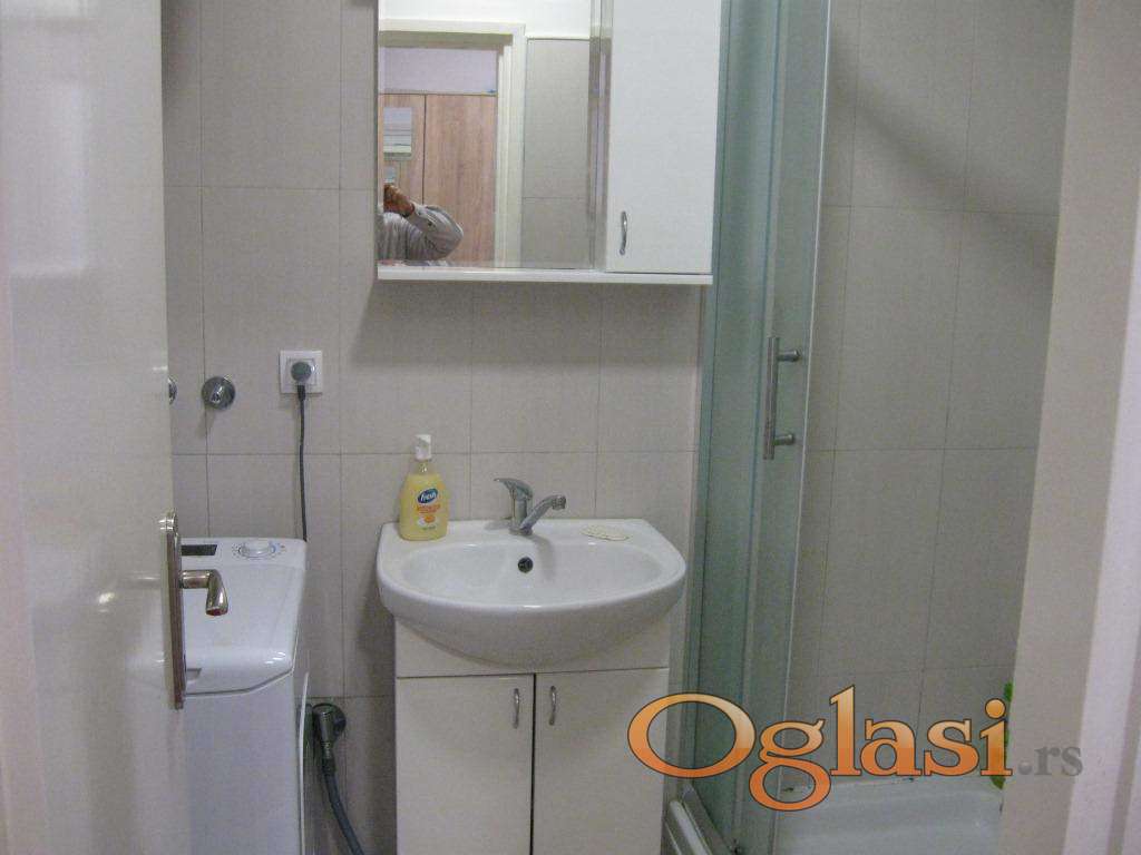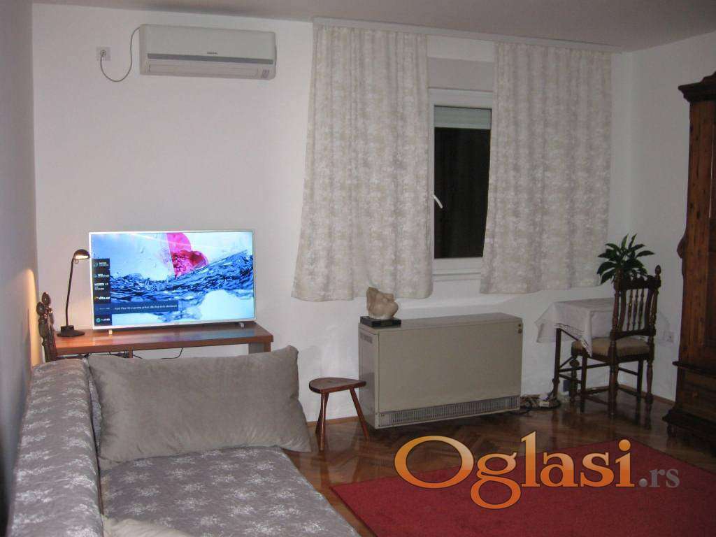 Izdaje se renoviran jednosoban stan na Karaburmi u ulici Dr. Nika Miljanića, površine 42m2, na prvom spratu od četiri. U blizini su autobusi 16, 23, 25, kao i 25P, 74. Stan je okrenut istoku. Poseduje klimu, veš mašinu, internet i kablovsku, kao i TV. Posebnu prostoriju za sušenje veša (vešernicu). Pored velikog predsoblja poseduje kuhinju sa trpezarijom, spavaću sobu sa dva ležaja i kupatilo sa tuš kabinom. Cena nadoknade je 350E+depozit 200E. Režija je oko 80E. Grejanje je TA. Izdaje se osobama koje će poštovati kućni red i stan održavati. Vlasnik je Miloš 0603962144.