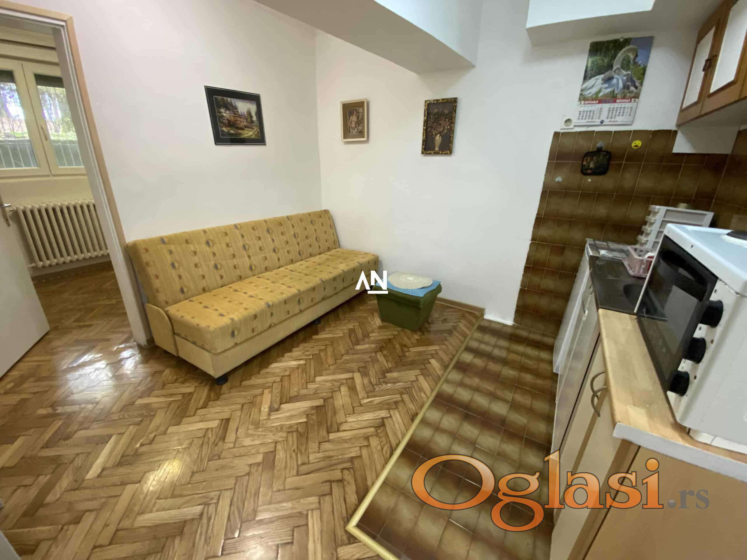 Izdajemo stan sa zasebnim ulazom u prizemlju stambene zgrade samo domaćim drzavljanima. Sastoji se od: dnevne sobe sa kuhinjom, spavaće sobe, hodnika i kupatila. Grejanje je centralno. Kablovsku i internet možete birati po vašim potrebama. Autobuska stanica se nalazi na 150m (48, 505, 47N), a market je ispred zgrade. Ljubimci nisu dozvoljeni. Obavezan je depozit u visini od 2 mesečna zakupa. Odmah useljiv! Agencijska provizija se plaća u skladu sa opštim pravilima poslovanja.//Agent:064/5335446//