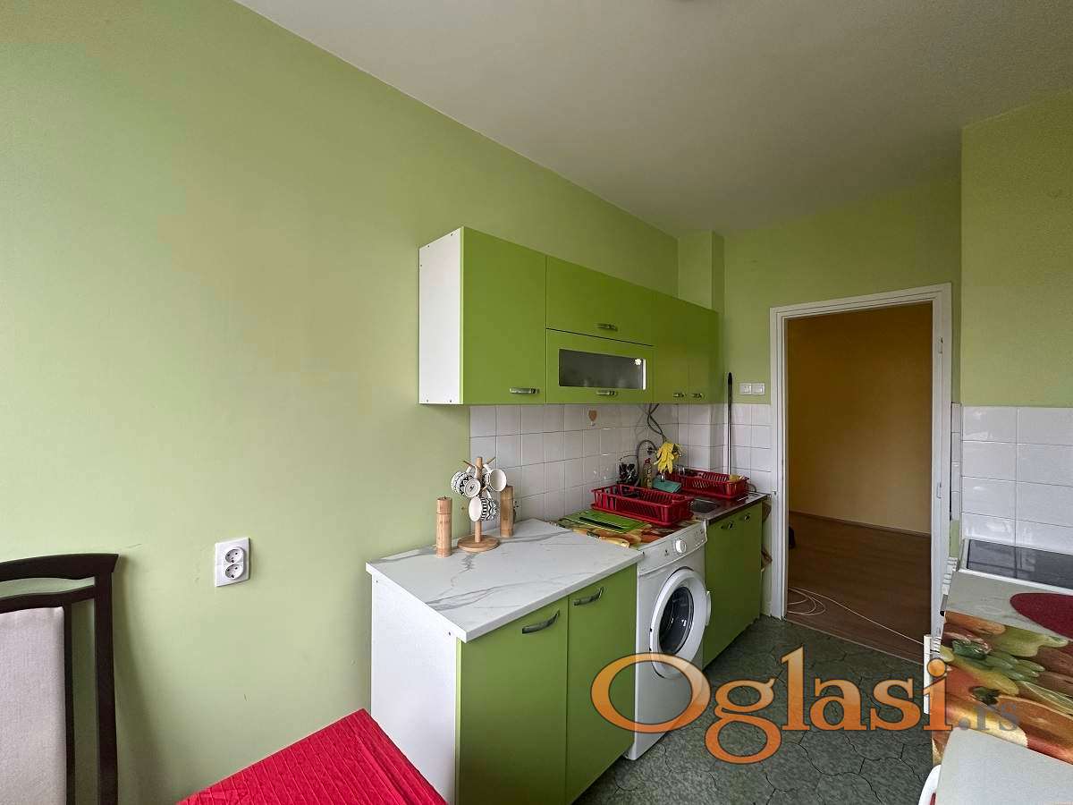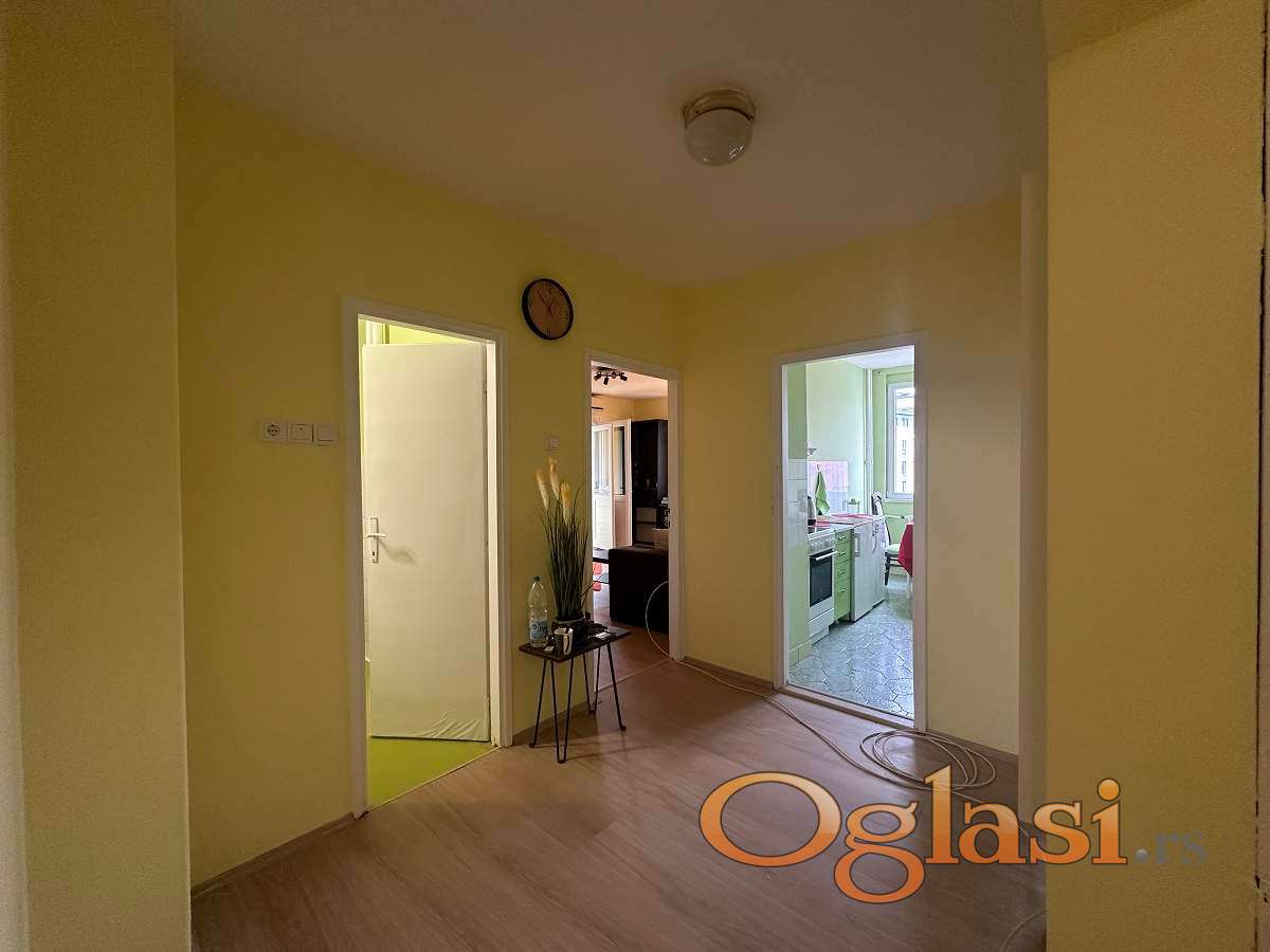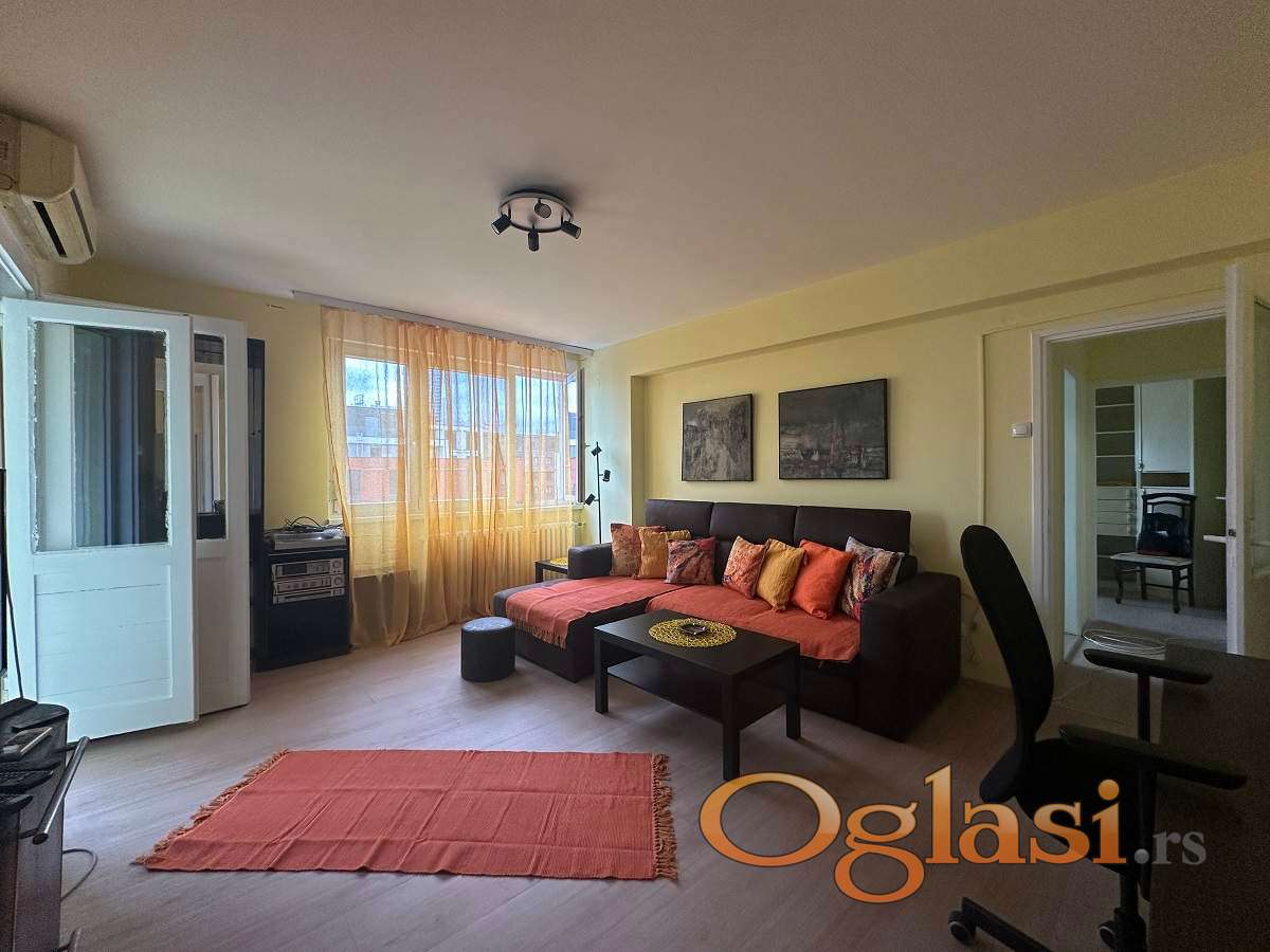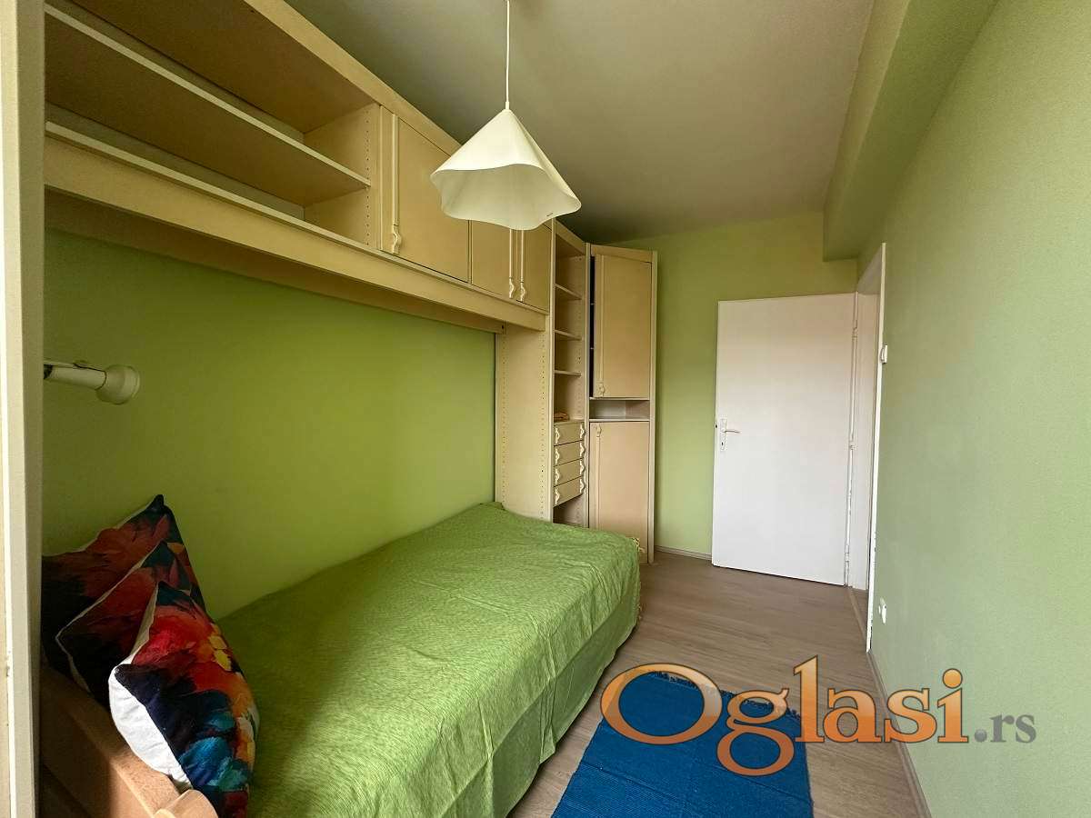 Stan je veoma svetao, zapadno orijentisan i osunčan tokom celog dana, sa funkcionalnim rasporedom koji obuhvata prostran hodnik, dnevni boravak sa izlazom na lođu, dve spavaće sobe, kao i kuhinju sa trpezarijom i kupatilo. Grejanje je centralno, a u cenu zakupa su uključeni kablovska televizija i internet (SBB).