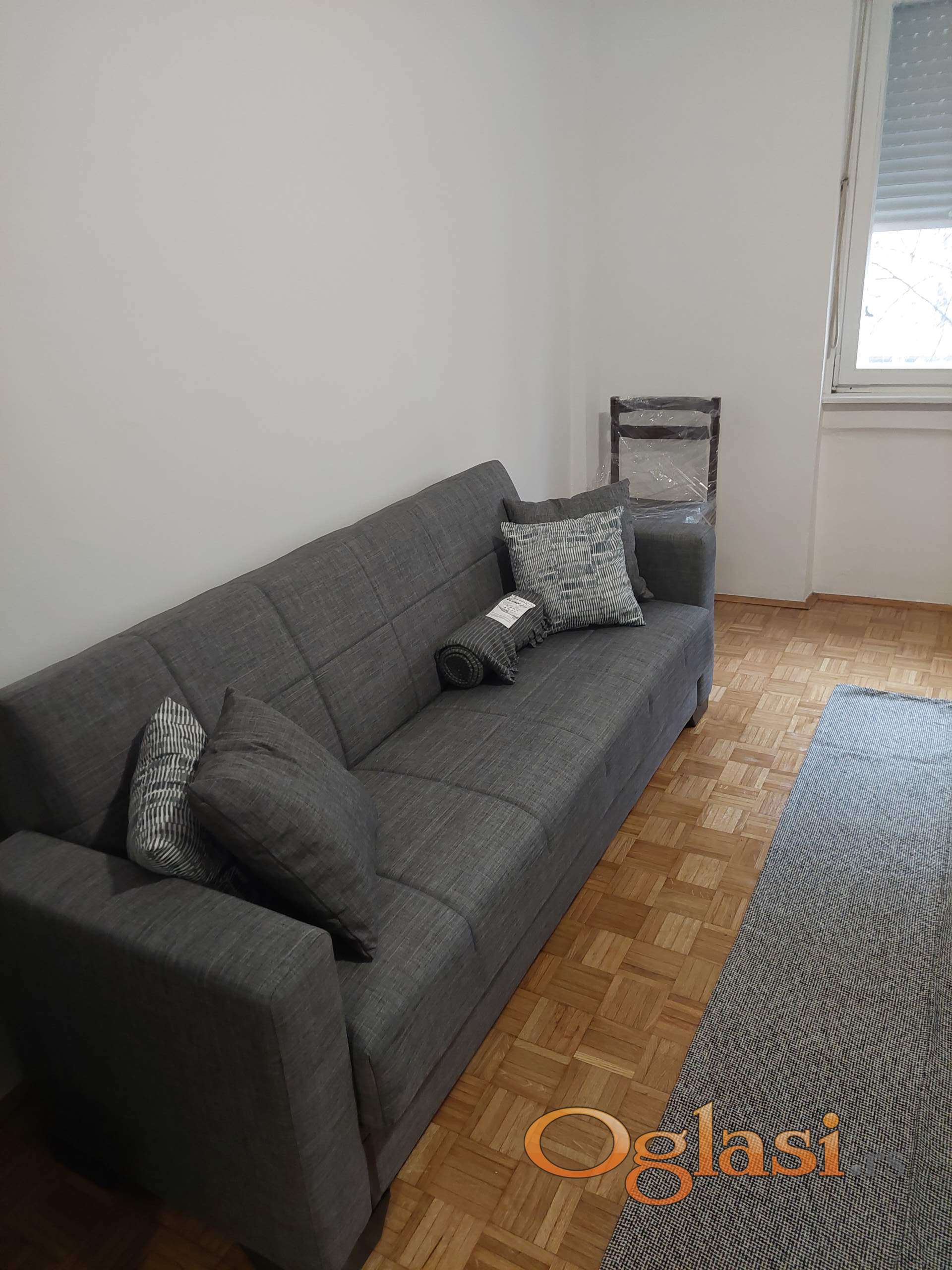 Izdajem namešten jednosoban stan, NS, Liman IV, Narodnog fronta 61, II sprat, površine 35m2, za zaposlenu osobu ili par. Uredan ulaz, gleda na jugoistok, nema direktnog sunca, dvorišno orijentisan, protočna voda, centralno grejanje. Upravo hoblovan i lakiran parket, potpuno novi kreveti - dva lepa troseda, tepih, staza i klub sto iz Ikee. Upravo je sve okrečeno i ofarbana je komplet stolarija, tek emajlirana kada. Plakari sa dosta mesta za odlaganje, kuhinjski elementi, frižider, šporet, veš mašina. Kirija je 300 evra, režije oko 100 evra, obavezan depozit u visini jedne kirije. Ista je garantovana 2 godine! Spreman za viđenje i useljenje odmah. Bez agencija, vlasnik lično, Dragan 063516477. Viber, Whatsapp.