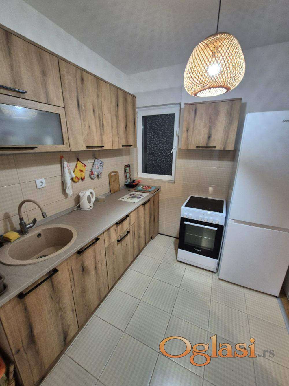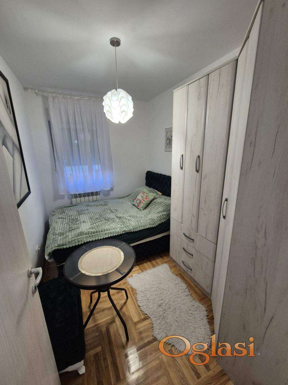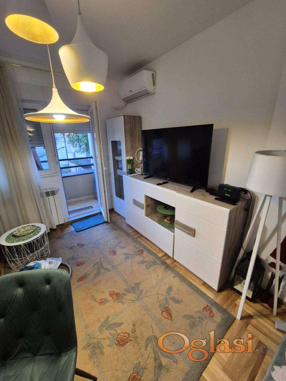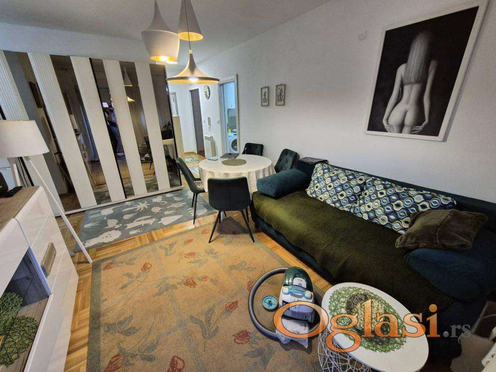 Izdaje se dvosoban namešten stan u novoj zgradi sa kompletno novim nameštajem i belom tehnikom sa posuđem i posteljinom. Stan se sastoji od dnevno trpezarijskog dela, kuhinje, zasebne spavaće sobe, kupatila, predsoblja i terase. Grejanje etažno sa cenom po potrošnji. Stan se nalazi između Cvetkove pijace i novog BEO TC blizu mnogih tramvajskih trolejbuskih i autobuskih linija. Parkiranje bez zone u ulici. Male režije, klima. Wifi i kablovska televizija. Agencijska provizija 50% od prve zakupnine.