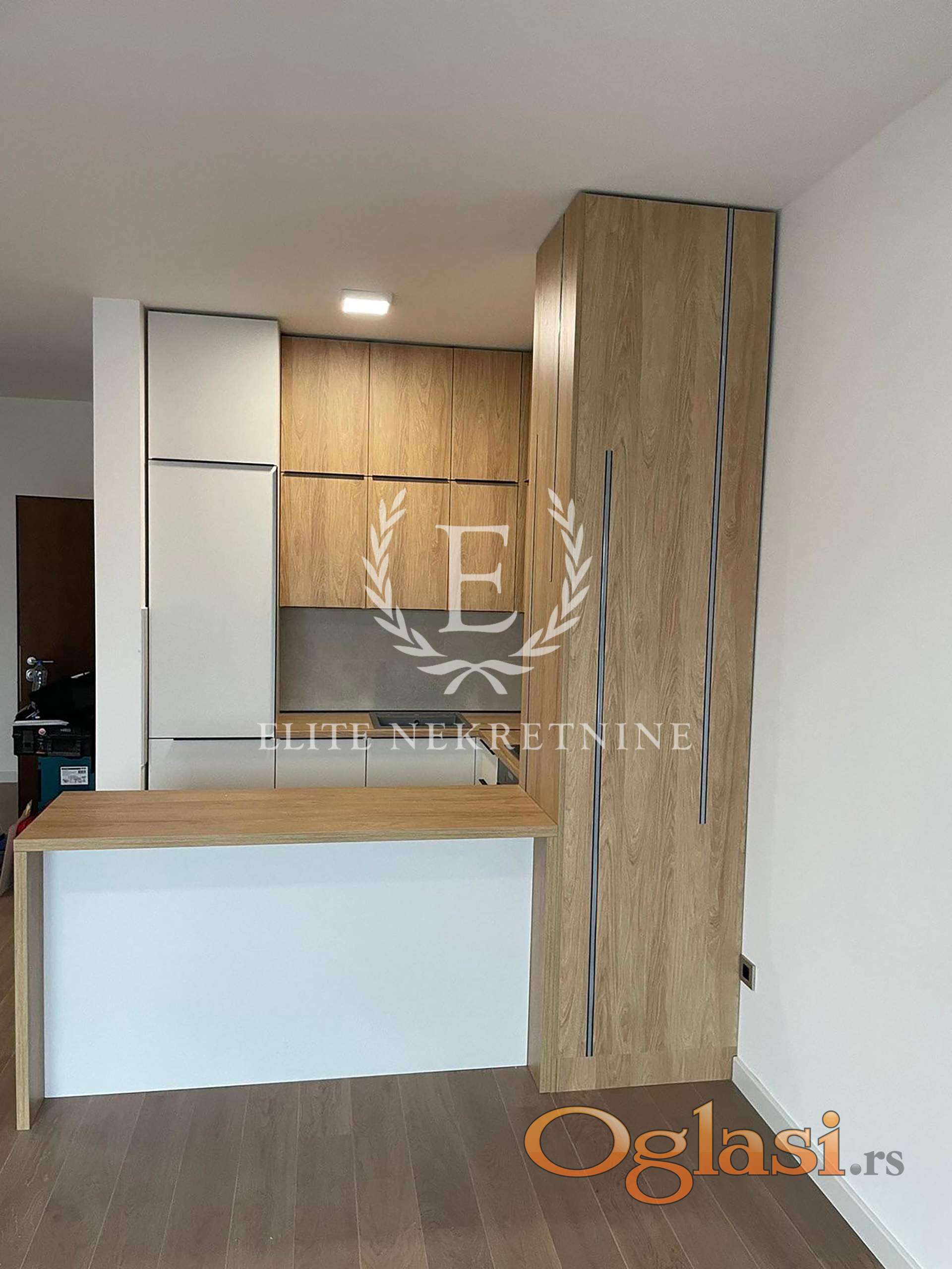U ponudi je veoma komforan trosoban stan u kompleksu The One. U stanu je trenutno opremljena kuhinja, uz mogućnost dodatnog opremanja, poseduje dve spavaće sobe, komfornu terasu, dvorišno orijentisan, a sama zgrada se odlikuje visokim kvalitetnom gradnje, kao i završnim obrada i materija:visina plafona 3m, podovi su pokriveni tarketom, ugrađena je prvoklasna italijanska granitna keramika, sanitarije Villeroy i Boch, baterije Hansgrohe. Ugrađena je i visokokvalitetna aluminijumska stolarija sa troslojnim temopan staklima, kao i aluminijumske roletne. Hlađenje je obezbeđeno multisplit sistemom, dok je grejanje sa kontrolom potrošnje.