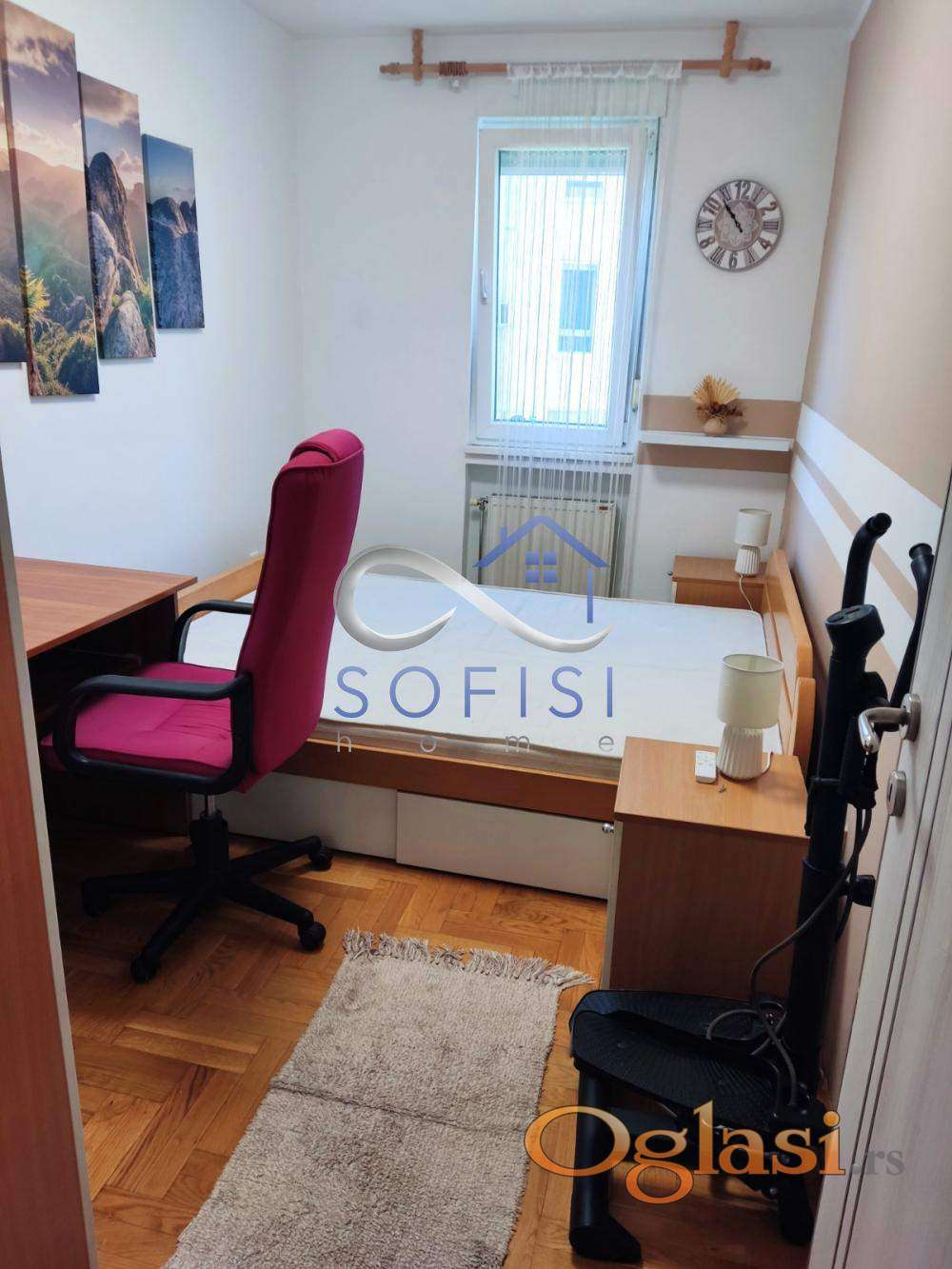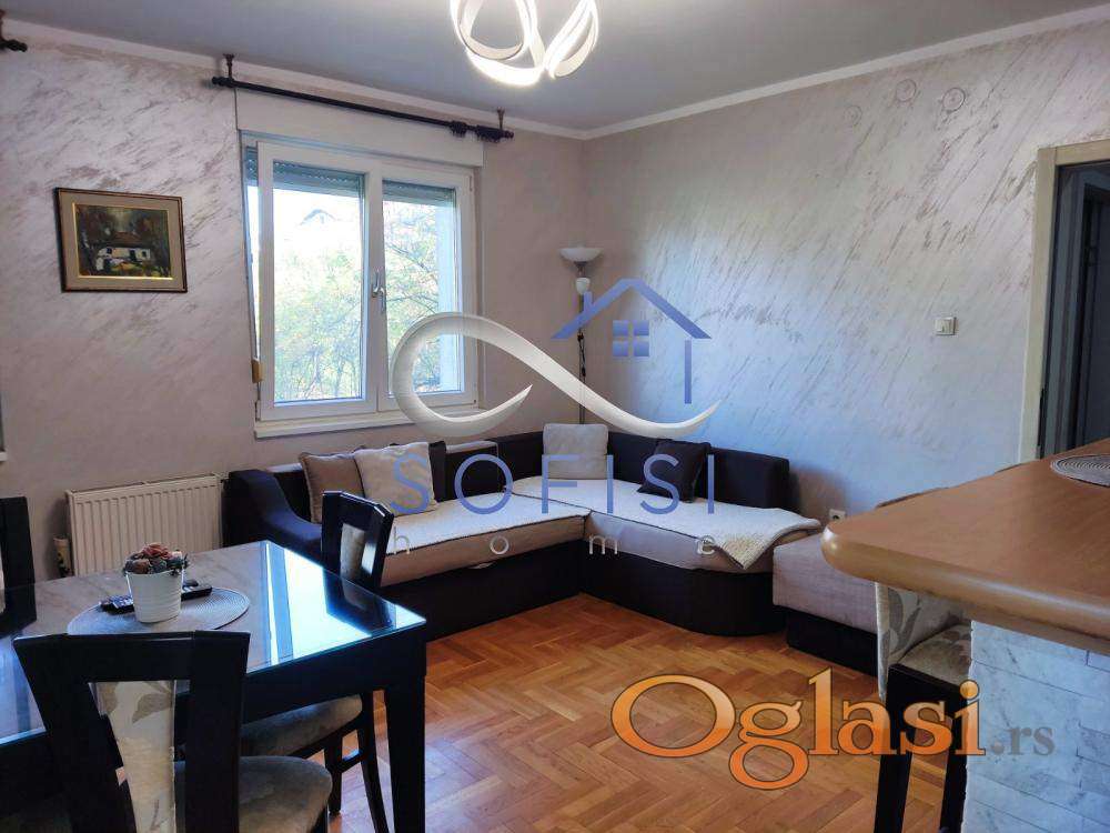 Novi Sad, Novo naselje, ulica Stanoja Stanojevića. Kompletno namešten, renoviran dvoiposoban stan na lepoj i mirnoj lokaciji. Ovaj stambeni prostor čine dnevni boravak sa kuhinjom, dve spavaće sobe (u dečijoj sobi dupli krevet). kupatilo sa kadom, posebno toalet i zatvorena terasa. Topla protočna voda i centralno grejanje. Veš-mašina, mašina za pranje posuđa, mašina za sušenje veša... Kablovska televizija i internet. Odmah useljiv. Za zakupce bez kućnih ljubimaca. (Sofisi home doo Novi Sad, Novi Sad, Reg. broj posrednika 2011). Agencijska provizija iznosi 50% od cene prve zakupnine. Kontakt tel.: 065/8557209