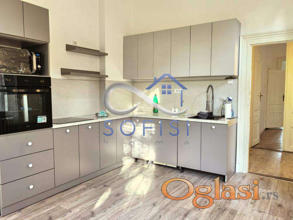 Novi Sad, Beogradski kej. Kompletno renoviran, izuzetno komforan i svetao trosoban salonski stan na najlepšoj lokaciji u gradu. Na samom keju, u neposrednoj blizini Dunavskog parka, pešačke zone, škole, vrtića... Ovaj lep stambeni prostor čine veoma komforan i osvetljen dnevni boravak, prostrana, kompletno opremljena, nova kuhinja sa sudomašinom (bez frižidera), dve velike spavaće sobe, kupatilo sa tuš kabinom, posebno toalet, hodnik i terasa. Centralno gradsko grejanje. II sprat u dobro održavanoj zgradi starije gradnje. Ulično orijentisan sa lepim pogledom. Useljiv odmah.