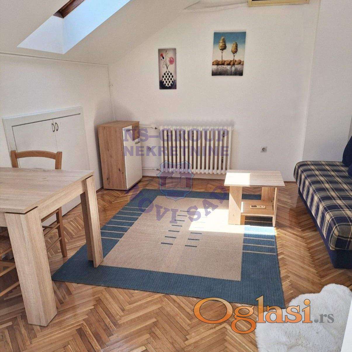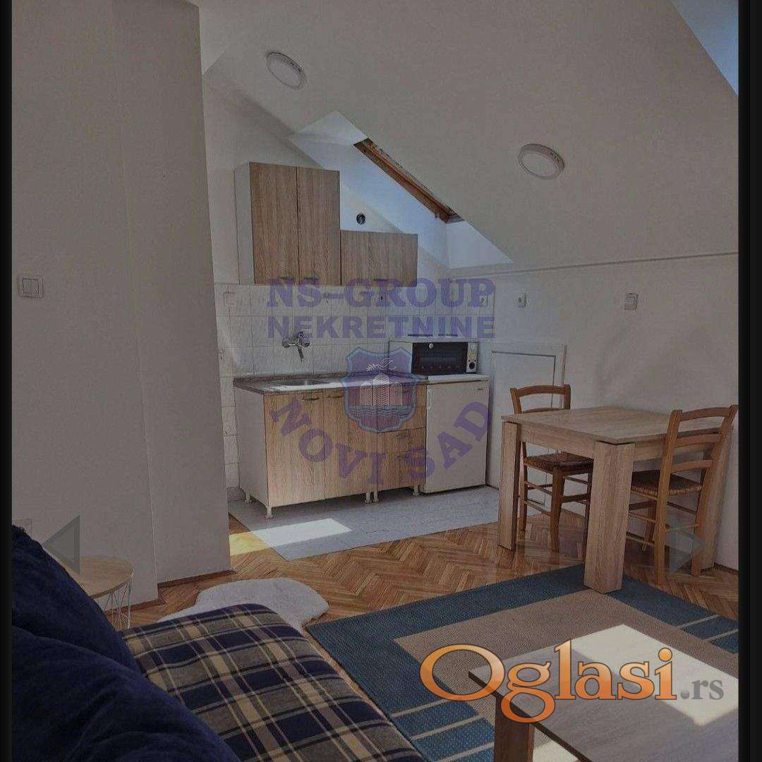 Izdaje se lepa garsonjera na odličnoj lokaciji. Stan se nalazi u potkrovlju i prostire se na 18 m². Opremljen je svim neophodnim sadržajima za normalan i prijatan život. Ulično je orijentisan, ali odlična izolacija zgrade obezbeđuje mir i tišinu. Za više informacija pozovite naše agente!