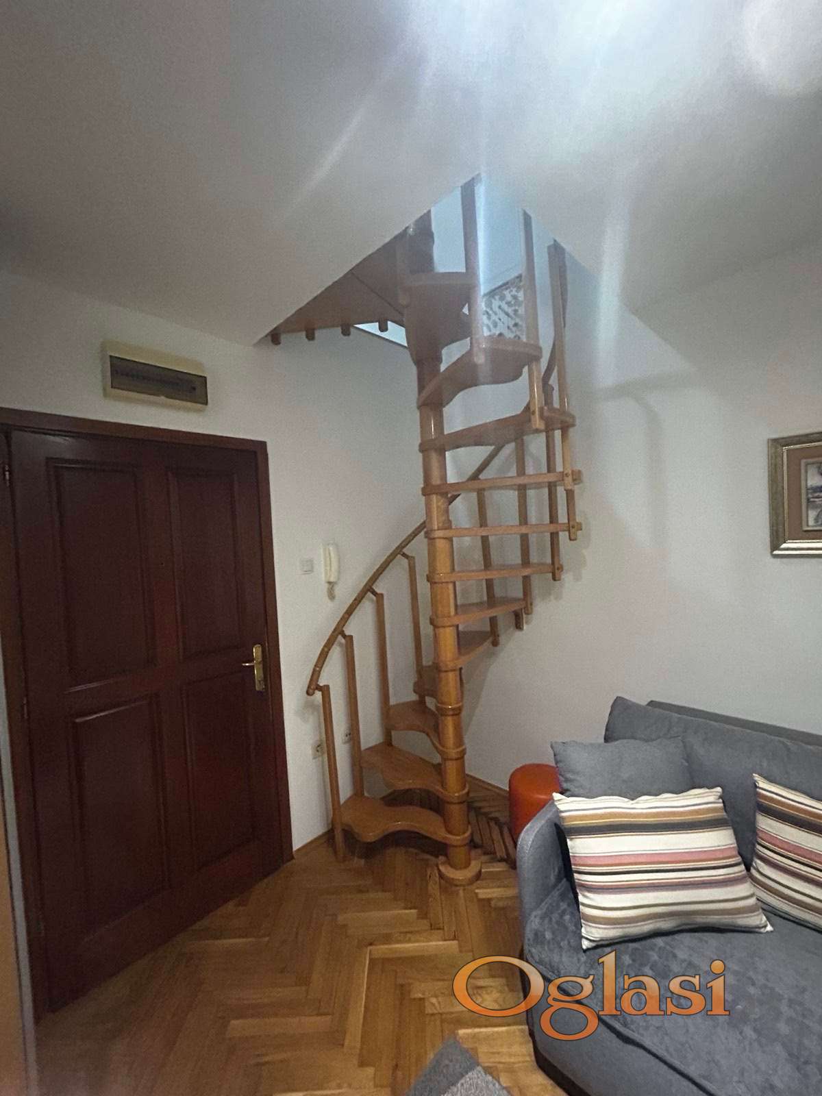 Stan je duplex i ima zvanično 38 m², dok je ukupna korisna površina oko 45 m², uključujući delove sa kosinama.