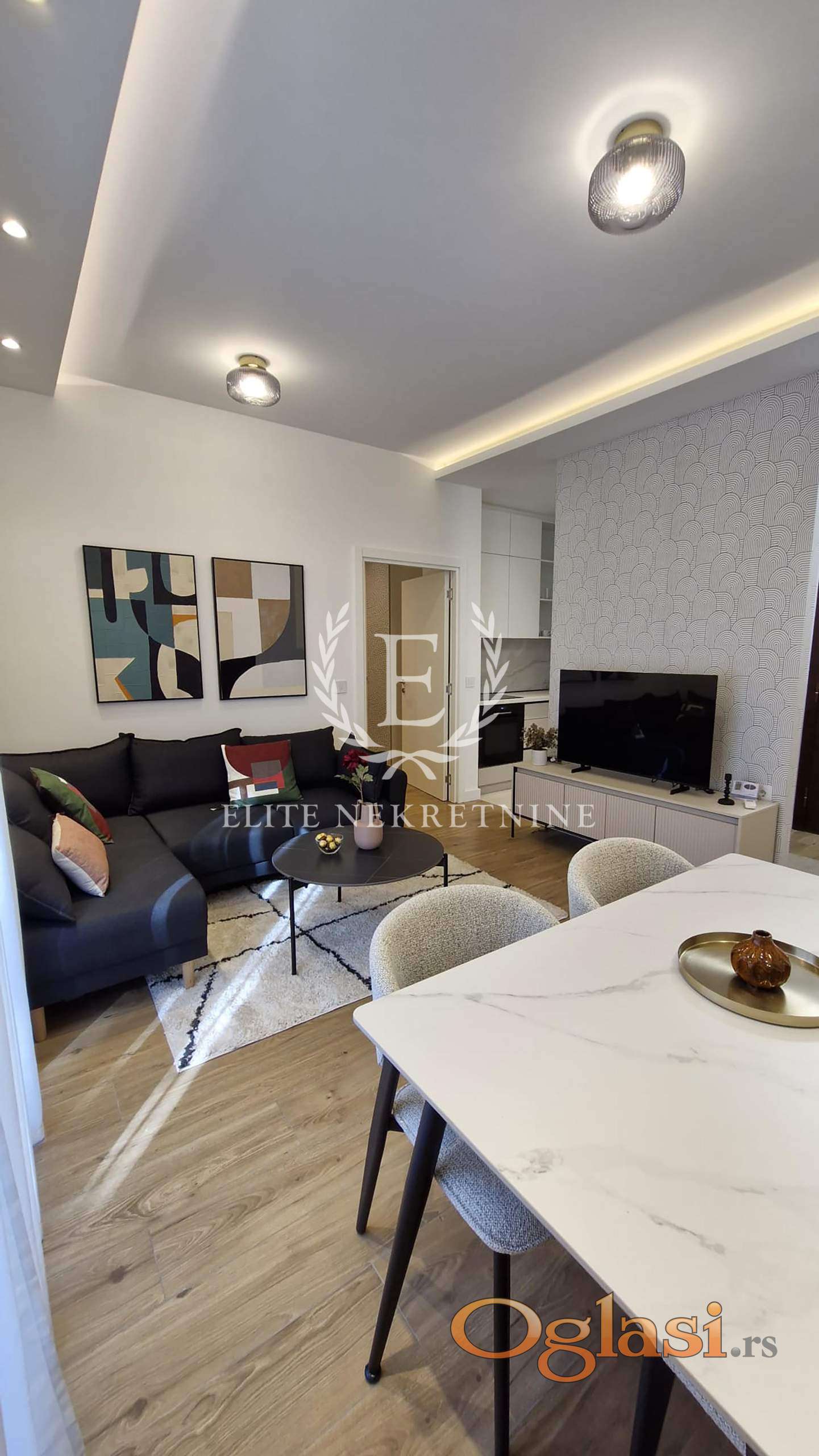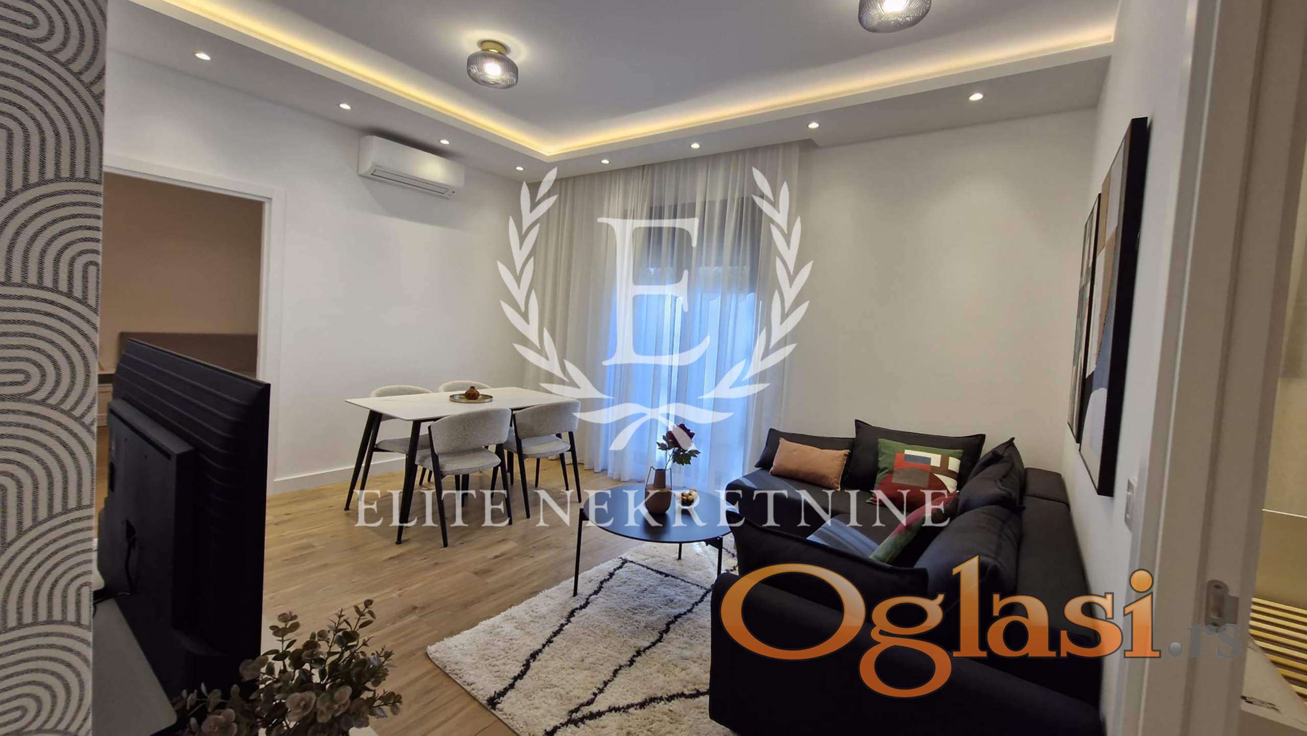 Stan odiše elegancijom i udobnošću – svaki detalj je pažljivo biran, od nameštaja do rasvete, sa ciljem da pruži maksimalan komfor i estetski utisak.
