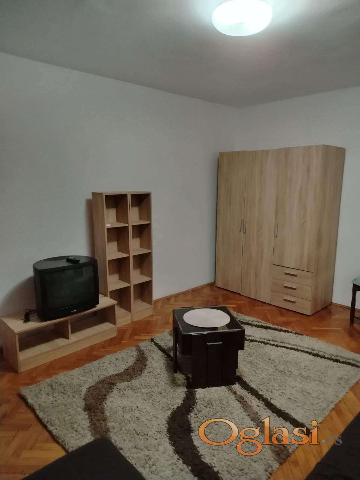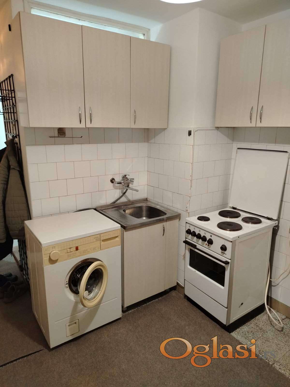 Odvojena soba, kuhinja, kupatilo i predsoblje. Šporet, veš mašina, frižider, TV.