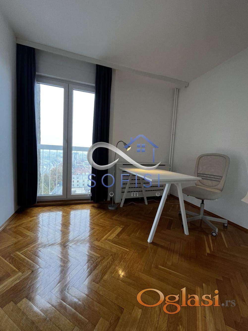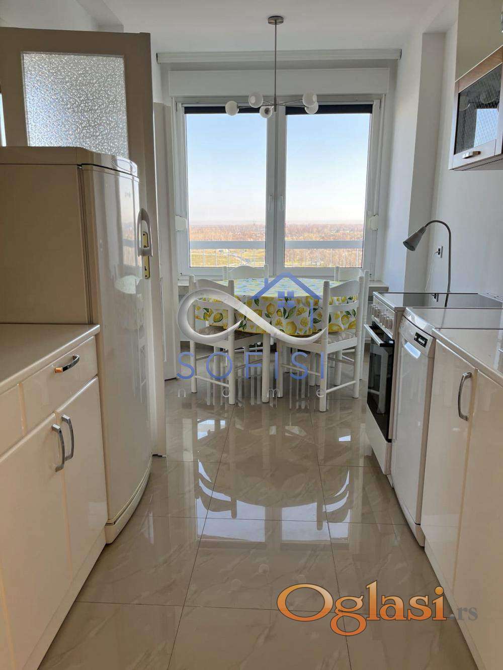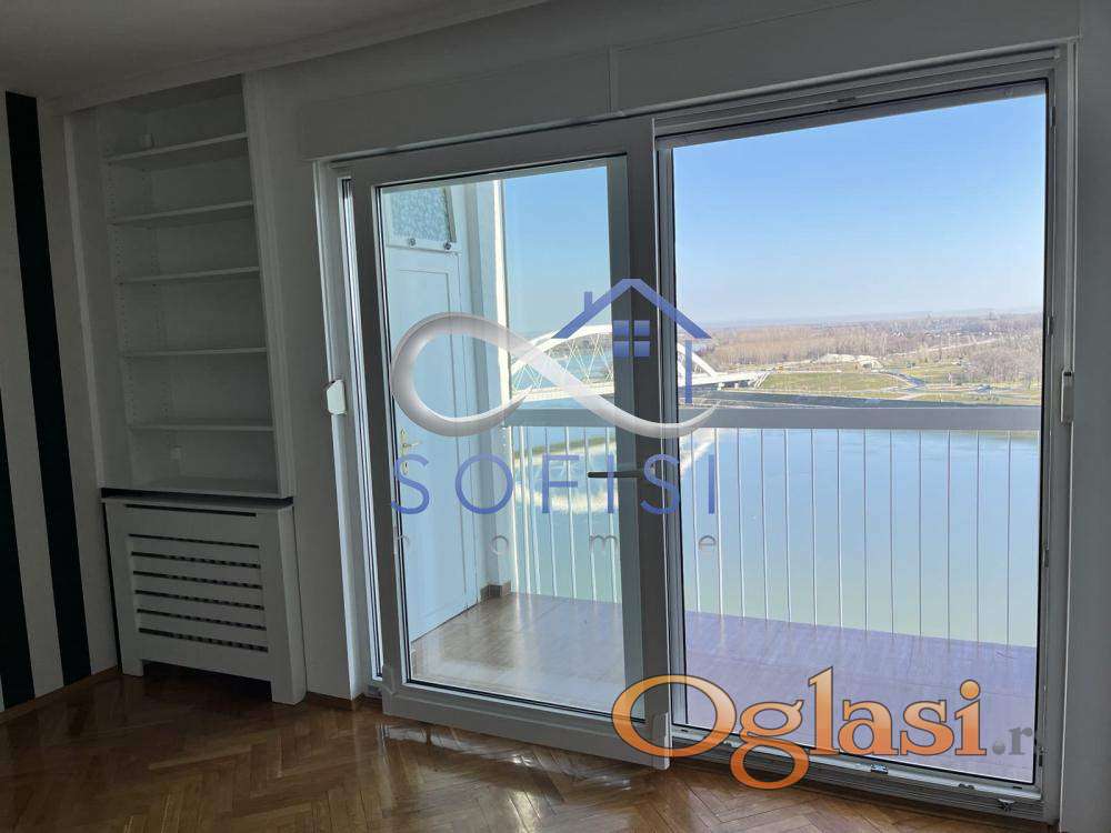 Novi Sad, Beogradski kej. Delimično namešten, komforan trosoban stan veoma funkcionalnog rasporeda. Jedna od najlepših lokacija za stanovanje, na samom Dunavu, u blizini škole, vrtića, dečijh igrališta, Dunavskog parka... Ovaj veoma svetao stambeni prostor nalazi se na 14. spratu u jednoj od poznatih kula na Beogradskom keju. Čine ga komforan dnevni boravak opremljen jednim trosedom i komodom, kompletno opremljena kuhinja sa trpezarijom i svom belom tehnikom (mašina za pranje posuđa), dve spavaće sobe sa francuskim balkonima, ulazni hodnik, renovirano kupatilo sa veš mašinom, odvojeno toalet, jedna ostava u stanu i velika terasa sa stena vratima i prelepim pogledom. Ostava na terasi. Centralno gradsko grejanje. Klimatizovan. Za ozbiljne zakupce. Useljiv odmah.