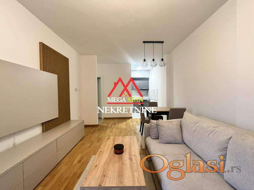 Stan je u potpunosti namešten novim nameštajem i opremljen belom tehnikom, spreman za useljenje.
