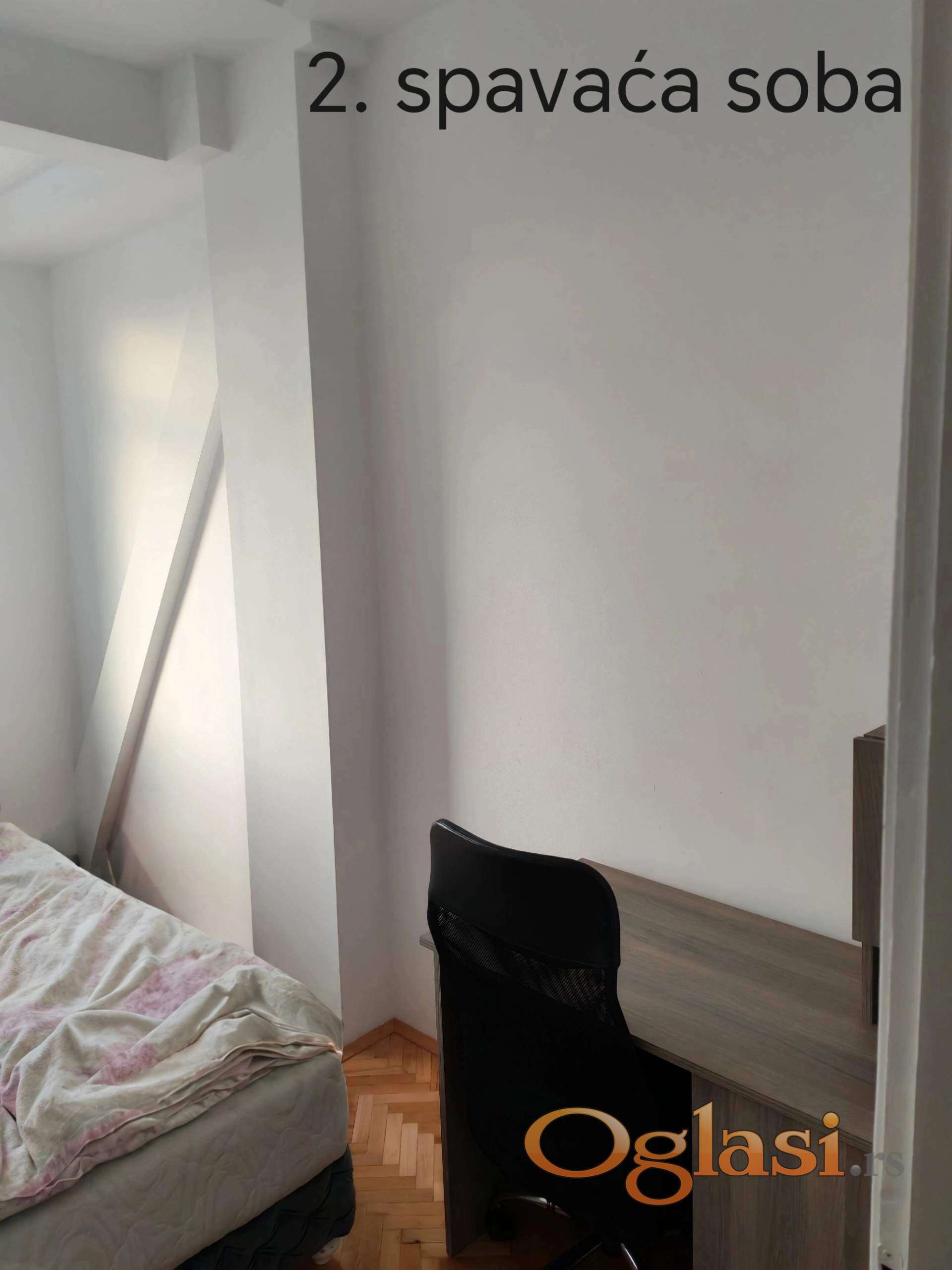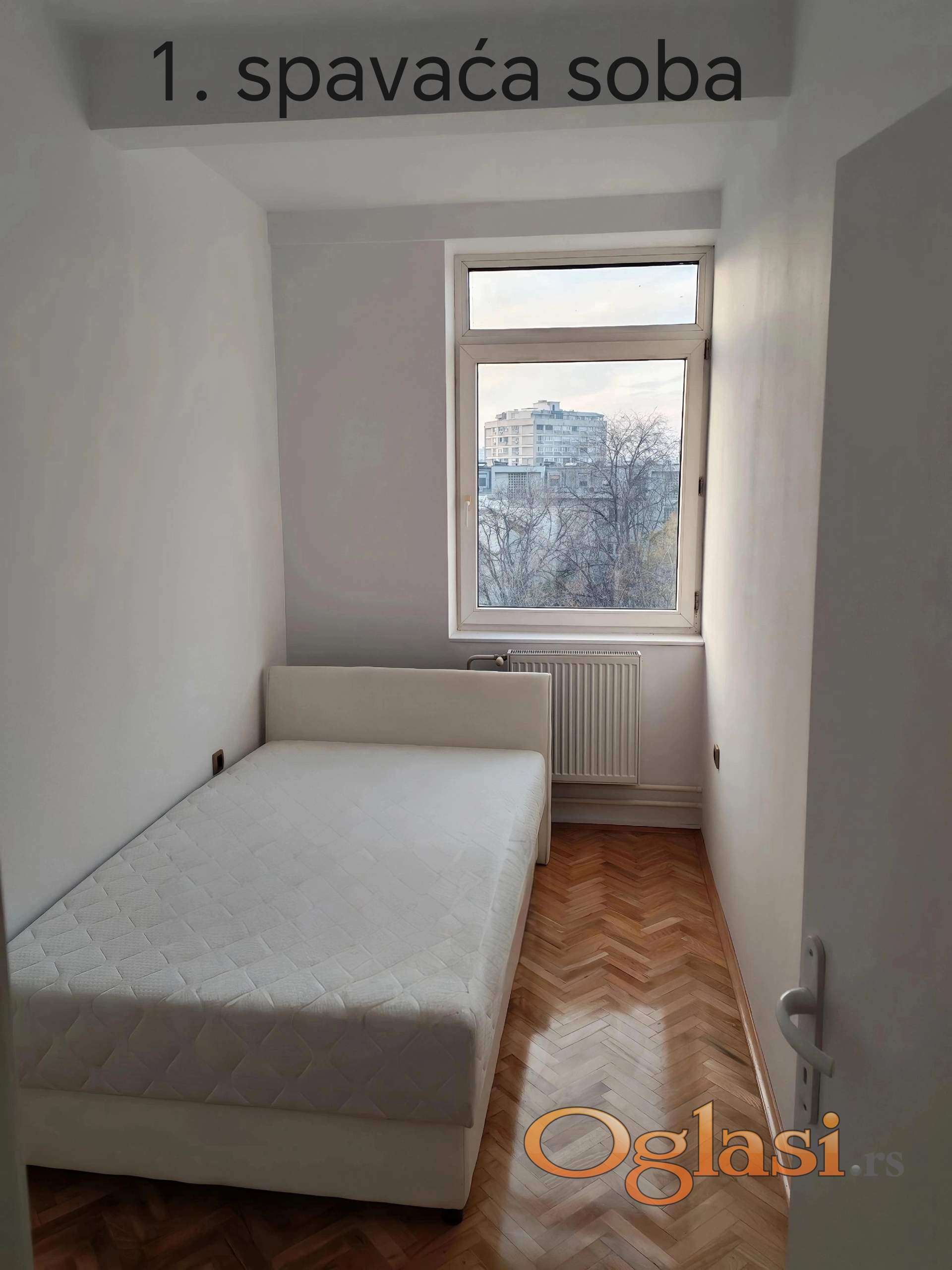 Stan je dvostrano orijentisan (celodnevna svetlost), sa pogledom na crkvu svetog Marka i Dorćol.
