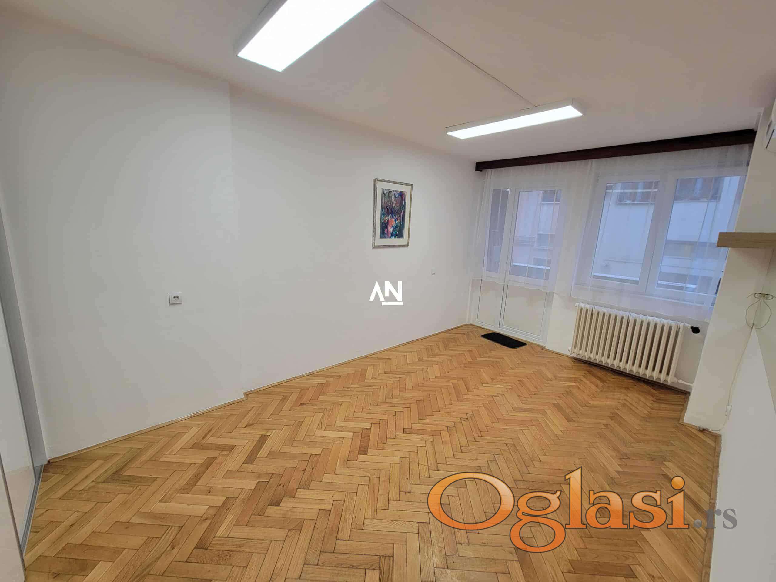 Izdajemo stan na fantastičnoj lokaciji, odmah na kružnom toku kod Kalenić pijace. Pogodan je za stanovanje ali i za ordinaciju, kancelariju, salon, auto-školu, itd. Stan se nalazi na prvom spratu u zgradi sa liftom, ima 2 terase i izdaje se prazan. Ima kuhinju i jedan veliki ugradni plakar. Stan je veoma svetao, sastoji od ulaznog hodnika, dnevnog boravka iz kog se izlazi na prvu terasu 3m2, kuhinje i trpezarije spojeno, dnevne sobe iz koje se izlazi na drugu terasu 3m2 i kupatila. Parking oko zgrade je zoniran, a u blizini zgrade se nalazi sve potrebno za svakodnevan život. Obavezan depozit u visini jedne kirije. Agencijska provizija se plaća u skladu sa opštim uslovima poslovanja. //Agent: 069-242-5330//