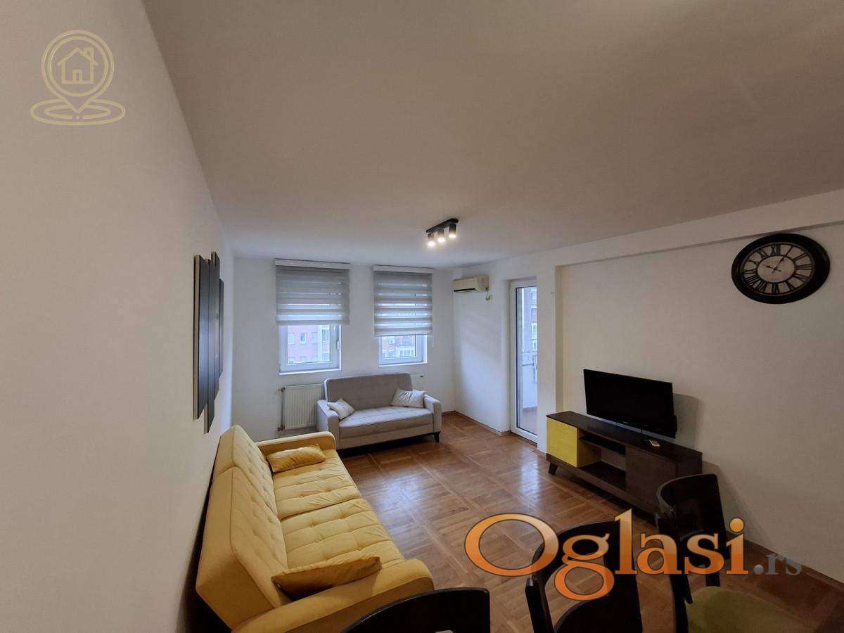 Stan je kompletno namešten, funkcionalnog rasporeda, a postoji mogućnost da se u manju sobu, po dogovoru, ubaci ležaj, što dodatno povećava fleksibilnost prostora. Stan je ulično orijentisan, sa dobrim dotokom prirodne svetlosti.