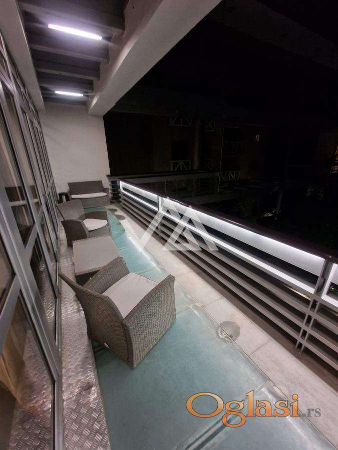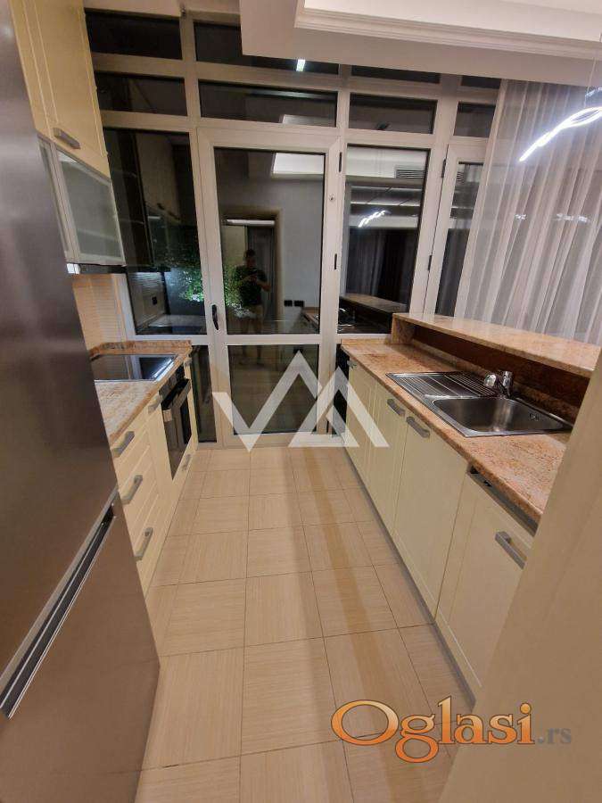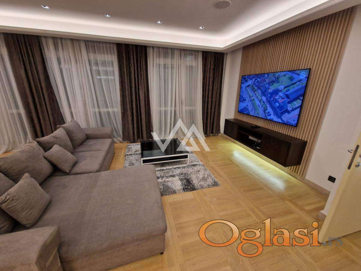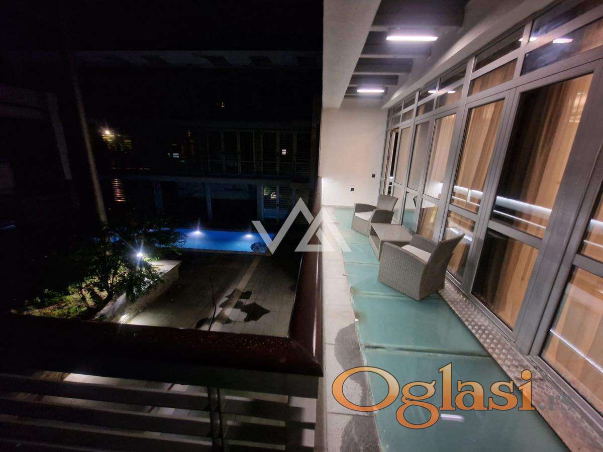 Iznajmljuje se luksuzan stan površine 148 m², smešten na 1. spratu (od ukupno 2), u ekskluzivnom kompleksu koji pruža potpunu privatnost.