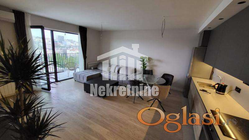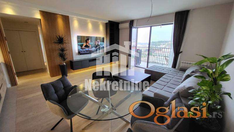 Kompletno opremljen novim modernim nameštajem i belom tehnikom, izuzetno svetao sa panoramskim pogledom na reku, prostran i funkcionalan. Stan ima 2 kupatila.