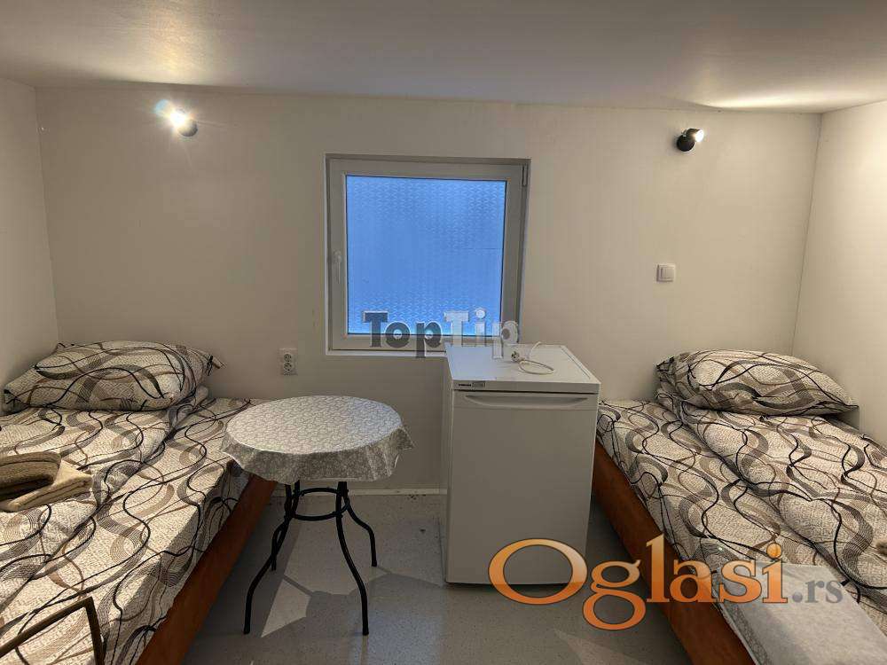 Stan u centru za izdavanje isključivo radnicima, 8 kreveta, kuhinja sa trpezarijom, 2 kupatila, 2 toaleta, grejanje Norveški radijatori. Stan se izdaje isključivo na minimalni vremenski perid od 12 meseci.