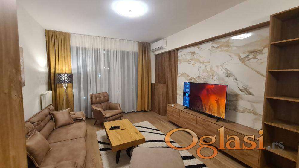 Izdaje se luksuzno opremljen trosoban stan sa garažnim mestom u zgradi VERDE, Beograd na vodi. Kompletno namešten, dve spavaće sobe, dva kupatila, terasa, garaža uključena u cenu. Zgrada sa recepcijom i obezbeđenjem 24/7, stan je dostupan i useljiv od 1 Februara.