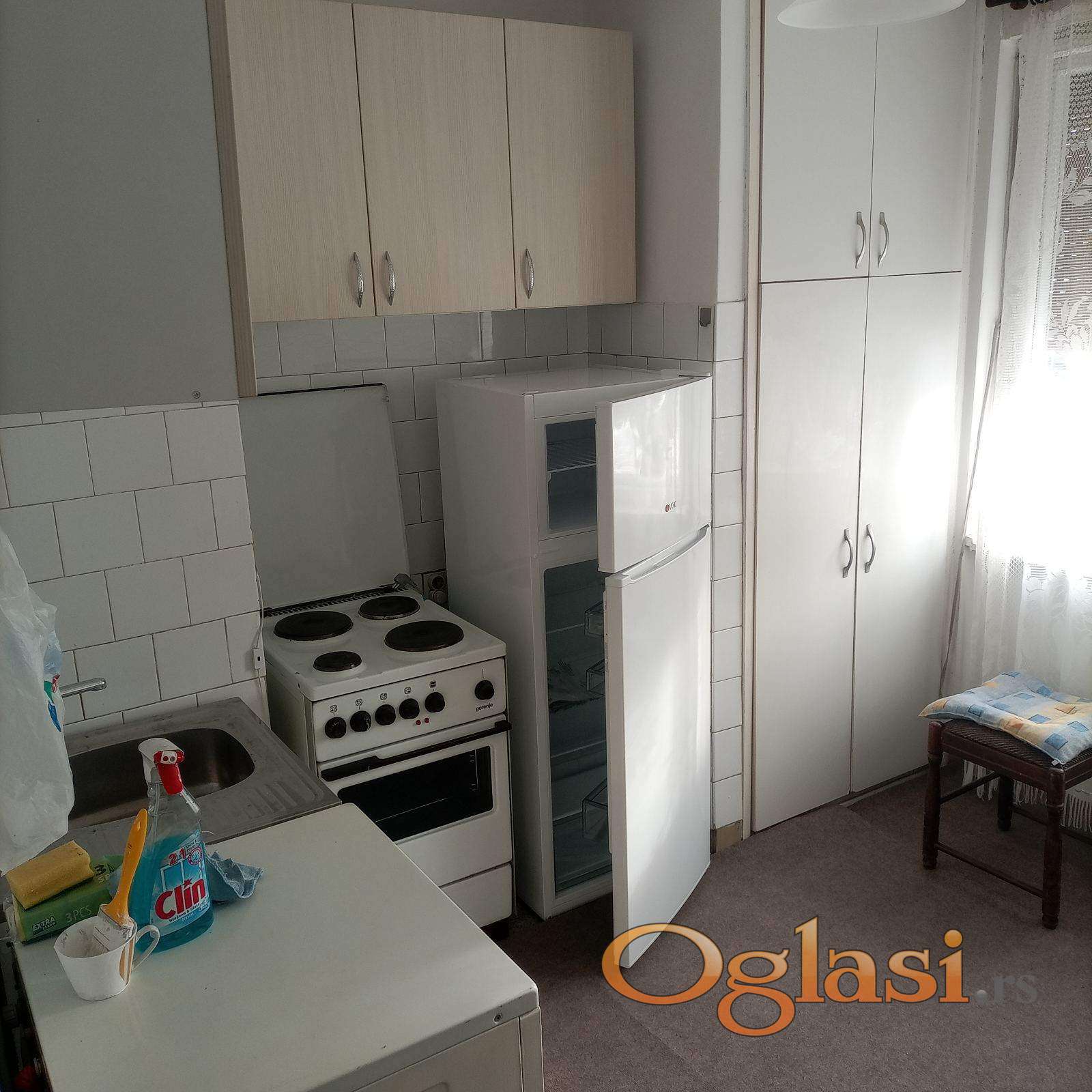 Odvojena soba, kuhinja, kupatilo i predsoblje. Šporet, veš mašina, frižider sa zamrzivačem, TV, klima