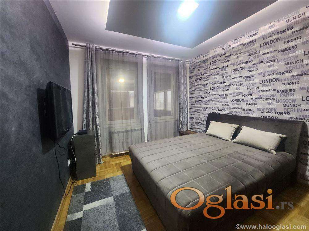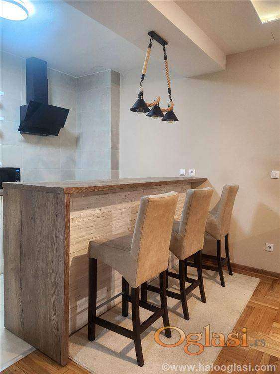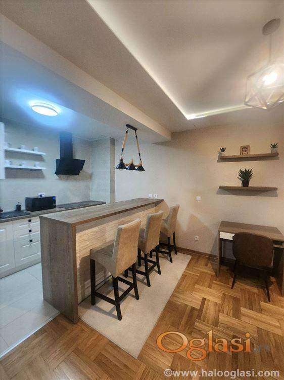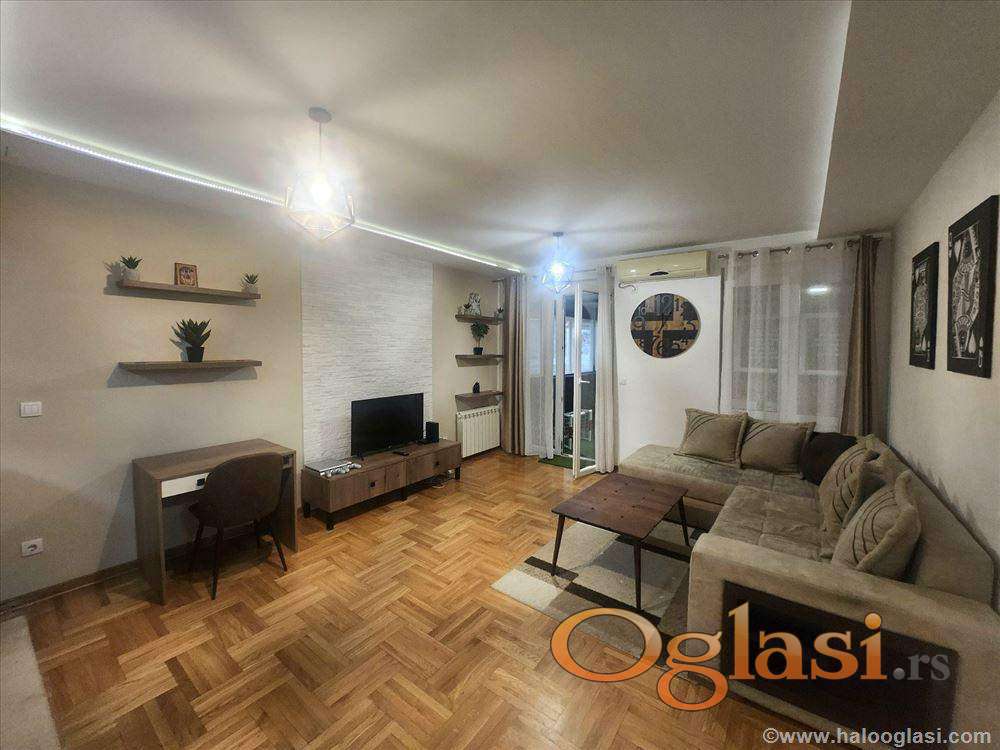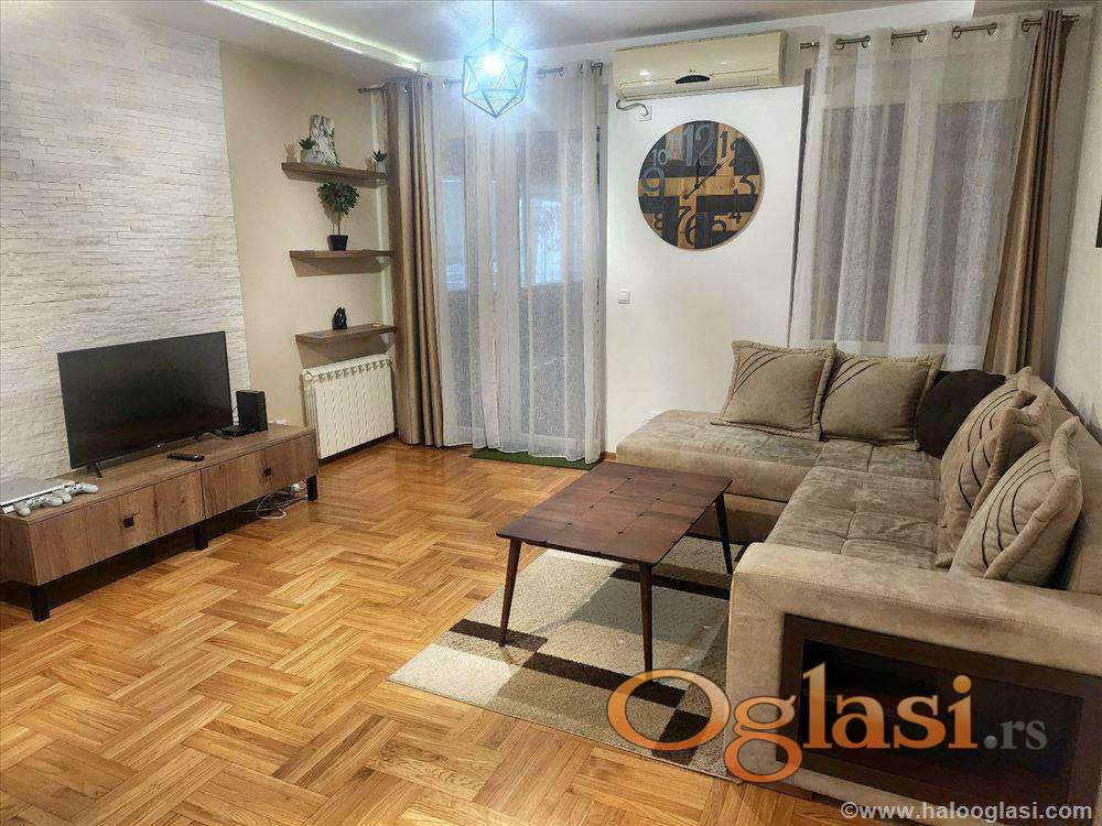 Izdaje se kompletno i kvalitetno opremljen komforan dvosoban stan u održavanoj kvalitetnoj novogradnji, 55m2 grejne površine , sa dodatnih 30m2 opremljene teretane i saunom u stanu.Mogućnost najma garažnog mesta.