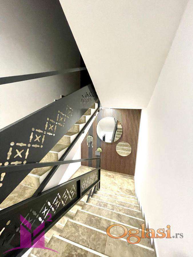Raspored prostorija je pažljivo osmišljen: veliki dnevni boravak sa prijatnim kutkom za čitanje, elegantna trpezarija i moderna kuhinja opremljena najnovijom tehnikom, posuđem i escajgom. Sve je spremno za svakodnevni život.