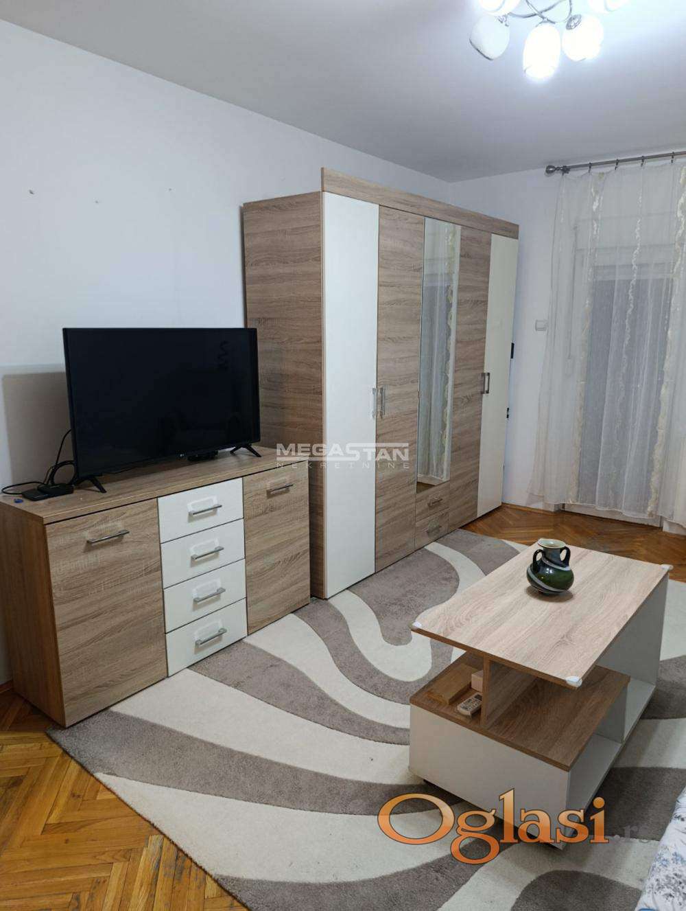 Garderober u sobi takođe nov. Plaćanje mesečno. U cenu zakupa ulazi privatno parking mesto u dvorištu zgrade.