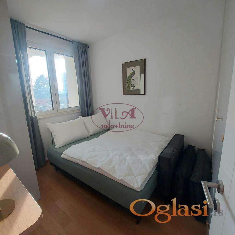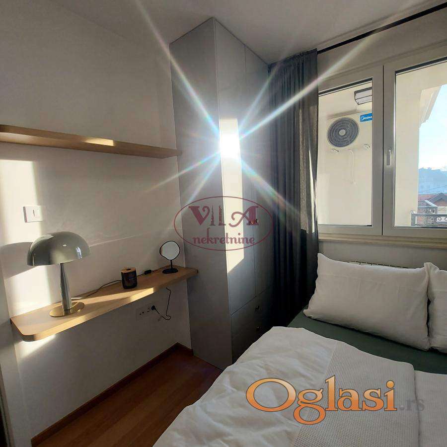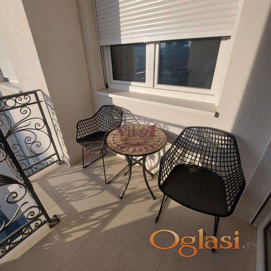 Izdaje se potpuno nov i do sad neuseljavan prelep jednoiposoban stan na odlicnoj lokaciji, na 5 minuta hoda od centra grada. Stan je kompletno i potpuno opremljen, veoma je svetao i sadrzi takodje i lepu terasu, a uz stan se moze iznajmiti i garazno mesto. Stan poseduje sve od bele tehnike, tv, ves masinu,sudo masinu, klimu. Stan nije pet friendly. Stan se izdaje iskljucivo zaposlenom paru.