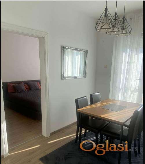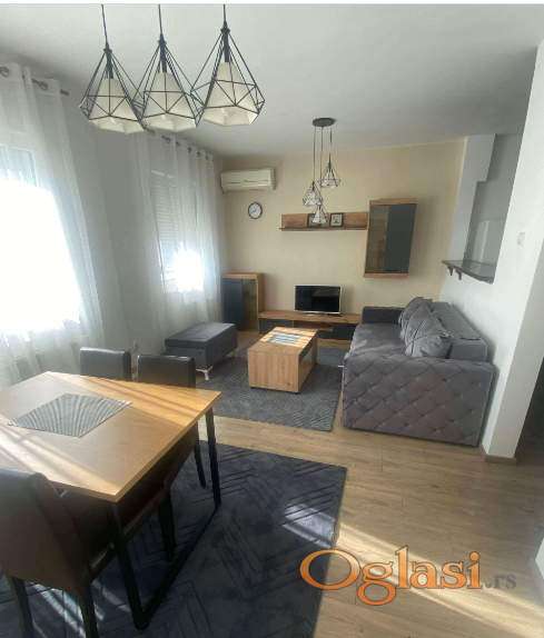 Izuzetno lep, kompletno opremljen stan,nov nameštaj,odlična lokacija mirna ulica,lep raspored hodnik, dnevni boravak, trpezarija,kuhinja je odvojena,ostava,soba, kupatilo, terasa,nisu dozvoljeni kućni ljubimci, useljiv odmah, cena 480 e+ depozit+ ag.provizija.