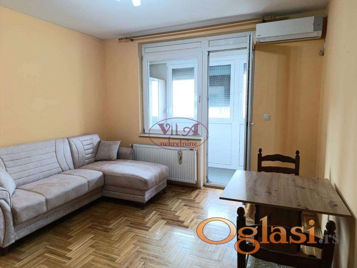 Izdaje se lep stan sa parkingom u dvorištu zgrade, blizu Lidl-a. Garsonjera je kompletno opremljena, sa novom ugaonom garniturom koja je udobna za spavanje, novim šporetom, ima klimu. Useljiva je odmah. Stan ima i lepu zatvorenu terasu. Tel.065/4245577 i 064/6586099.