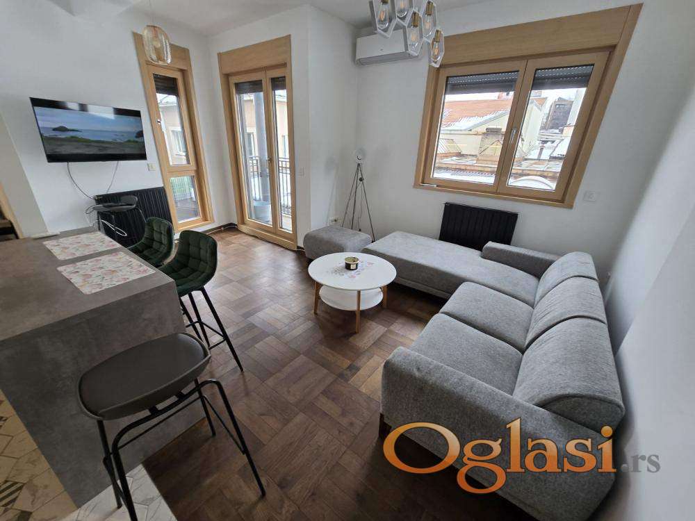 Izdaje se lux,manji trosoban stan( dve spavaće sobe sa dva francuska ležaja-ukoliko je nekom višak,drugi francuski ležaj može da se iznese),terasa,garaža uz doplatu od 100e-nije nužno da se iznajmi sa garažom.