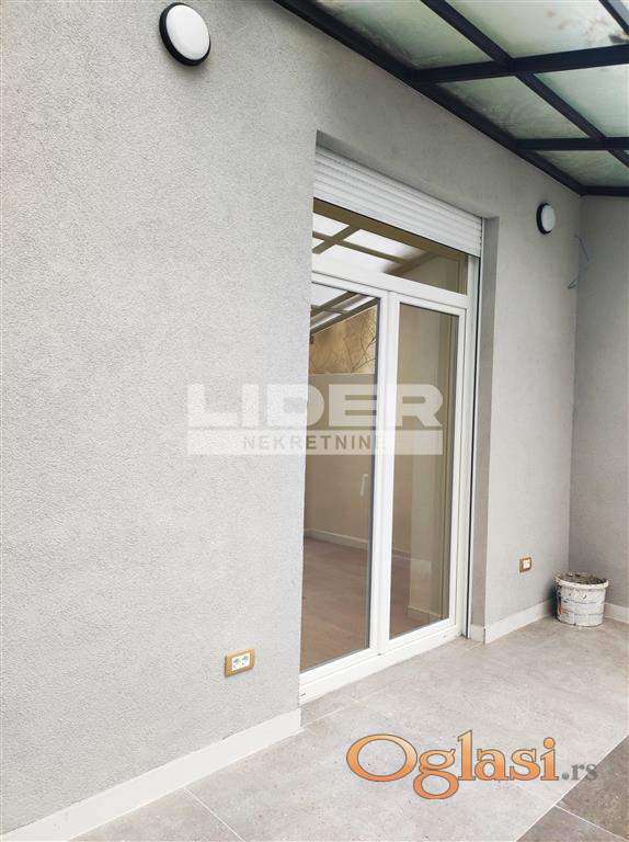 Sastoji se od ulaznog hodnika, kupatila, velikog open space koga čine kuhinja sa trpezarijom i dnevnom sobom iz koje se ulazi u dve spavaće sobe i izlazi na veliku terasu od 20m2.