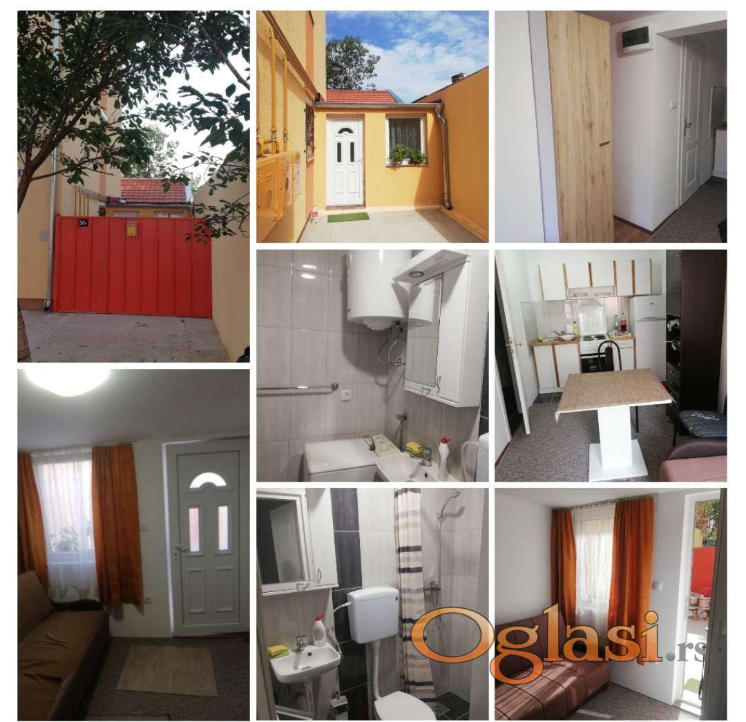 Garsonjera, 16 kv., dvorište 12kv.parking ispred kapije, inverter klima plus TA peć, 200 evra plus depozit u istom iznosu. Može i kao mali lokal.