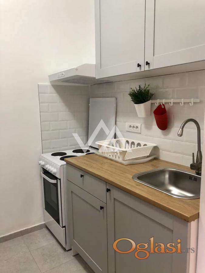 Potpuno renoviran, useljiv odmah . Agencijska provizija iznosi 50% od dogovorene cene zakupa jednokratno.