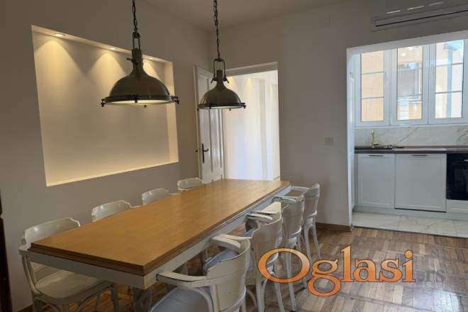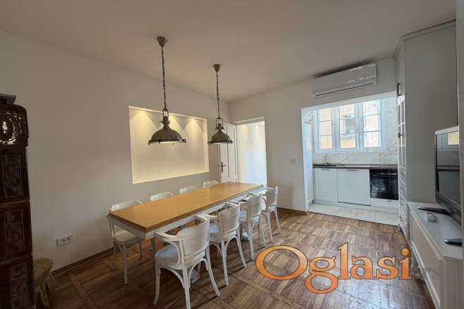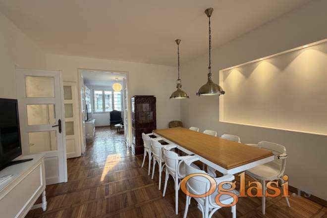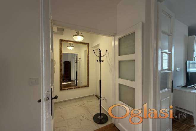 Stan odlikuju visoki plafoni, prozračnost i obilje prirodne svetlosti, što mu daje prepoznatljiv salonski karakter i osećaj komfora. Po rasporedu, stan se sastoji od ulaznog hodnika, prostranog dnevnog boravka, trpezarije sa kuhinjom, dve spavaće sobe, kupatila i odvojenog toaleta, a funkcionalna organizacija prostora čini ga pogodnim za savremen način života.