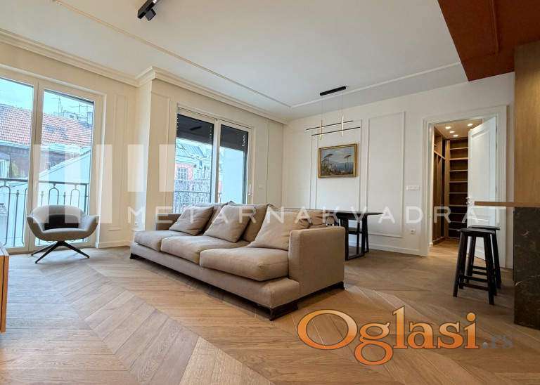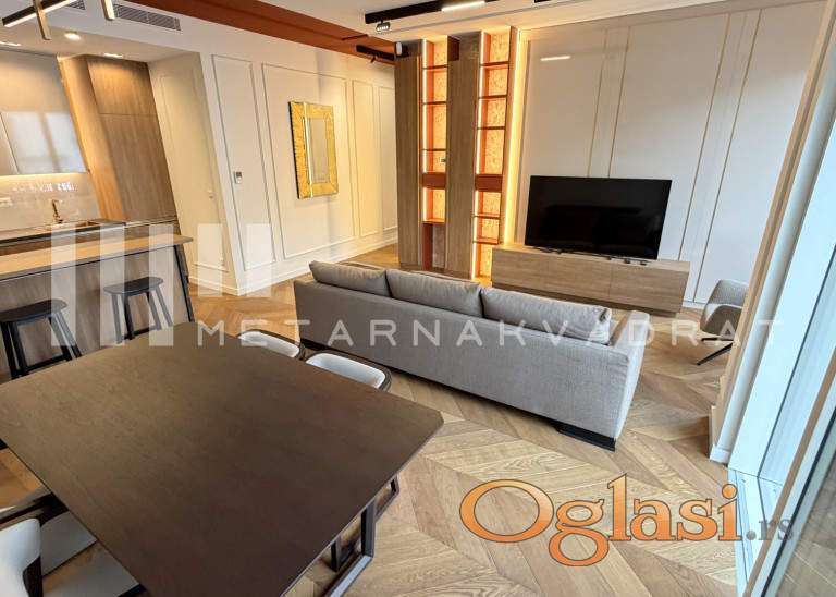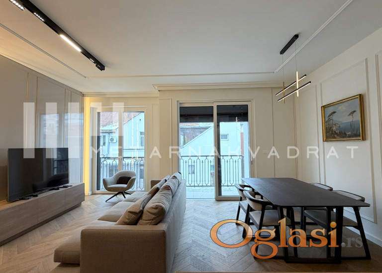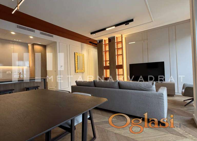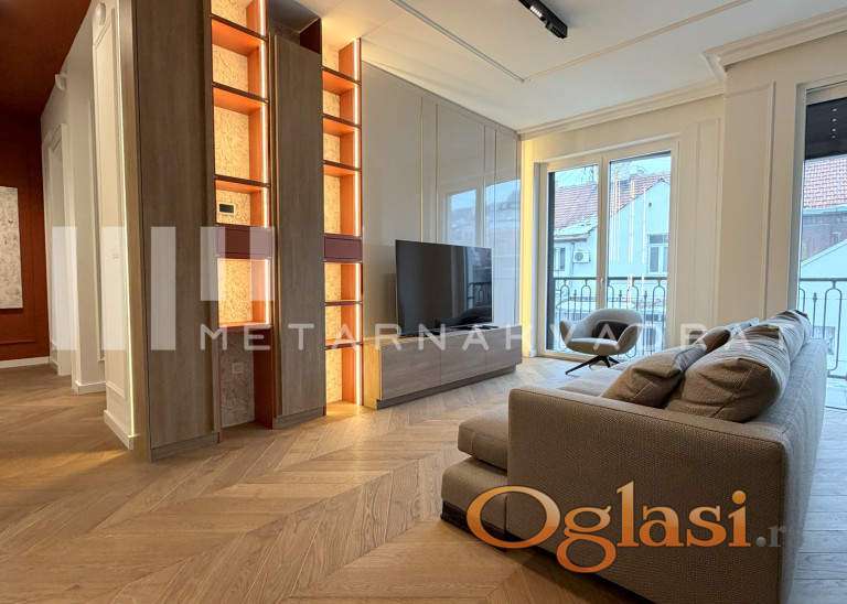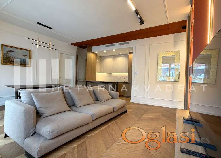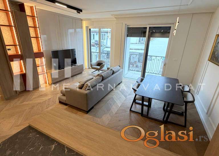 Stan se nalazi u jednoj od najlepsih ulica u Opštini Stari grad, u blizini svih važnih sadržaja za lep i komforan život(škola, pijaca, prodavnice, Tašmajdanski park, linije javnog gradskog saobraćaja...). Luksuzno i moderno opremljen stan u novom objektu visoke kategorije i kvaliteta gradnje. Objekat u kom se nalazi predmetni stan, svojim stanarima nudi dodatne sadržaje u vidu zatvorenog privatnog bazena, spa zonu sa saunom i turskim kupatilom, kao i savremeno opremljenu teretanu. Stan se sastoji se od prostranog dnevnog boravka, kuhinje, trpezarije, dve spavaće sobe od kojih je jedna master sa sopstvenim kupatilom, dodatnog kupatila i terase. U suterenu zgrade se nalazi parking mesto uključeno u navedenu cenu zakupa. Agencijska provizija u skladu sa opštim uslovima poslovanja.