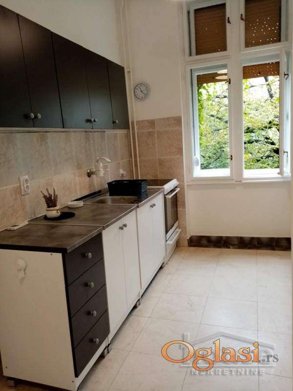 Izdaje se prazan, nenamešten, opremljen kuhinjskim elementima i belom tehnikom (šporet, kombinovi frižider) i dva ugradna plakara.