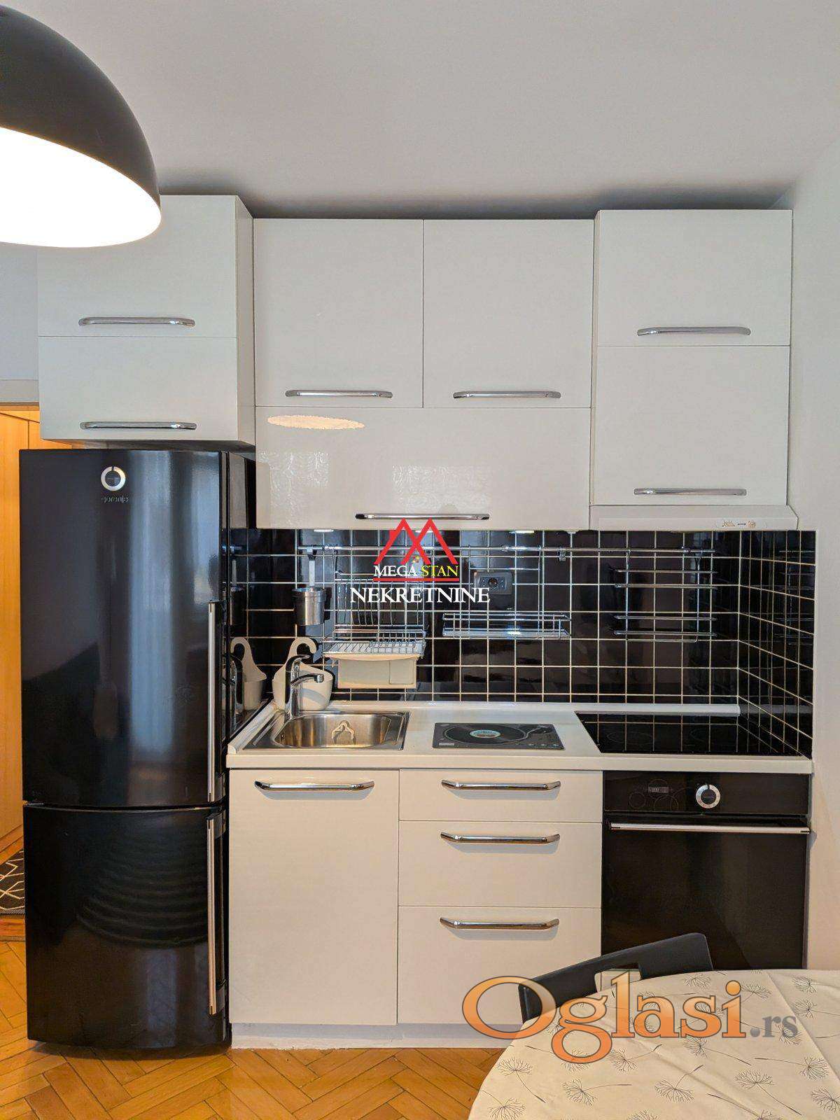 🛋️ Stan je kompletno opremljen modernim nameštajem i svim neophodnim uređajima za udoban život. U dnevnom prostoru se nalazi ugaona garnitura, stočić i TV polica, dok je kuhinja opremljena šporetom, frižiderom i svim potrebnim kuhinjskim elementima. Spavaća soba je funkcionalna i pruža miran kutak za odmor.