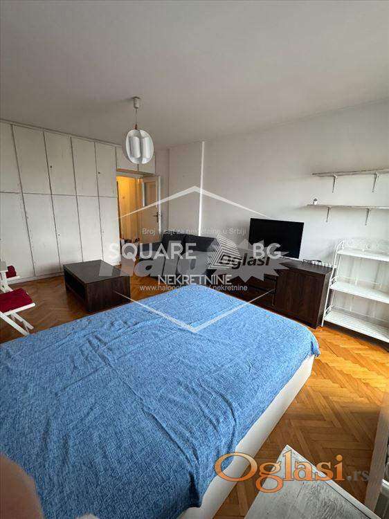 Izdaje se potpuno namešten stan površine 38 m², smešten na 5. spratu zgrade sa liftom, u samom srcu Beograda, nadomak Studentskog trga. Stan se nalazi u mirnoj jednosmernoj ulici, a u neposrednoj blizini su fakulteti, restorani, kafići i sve gradske sadržine.