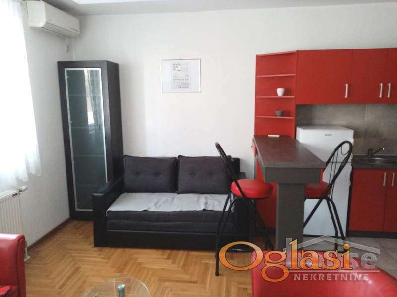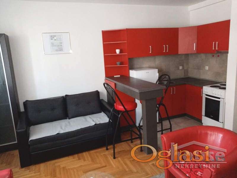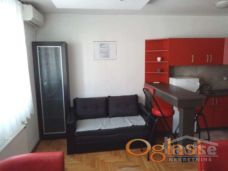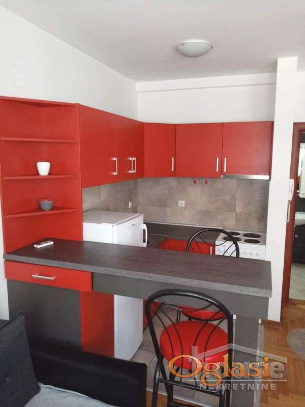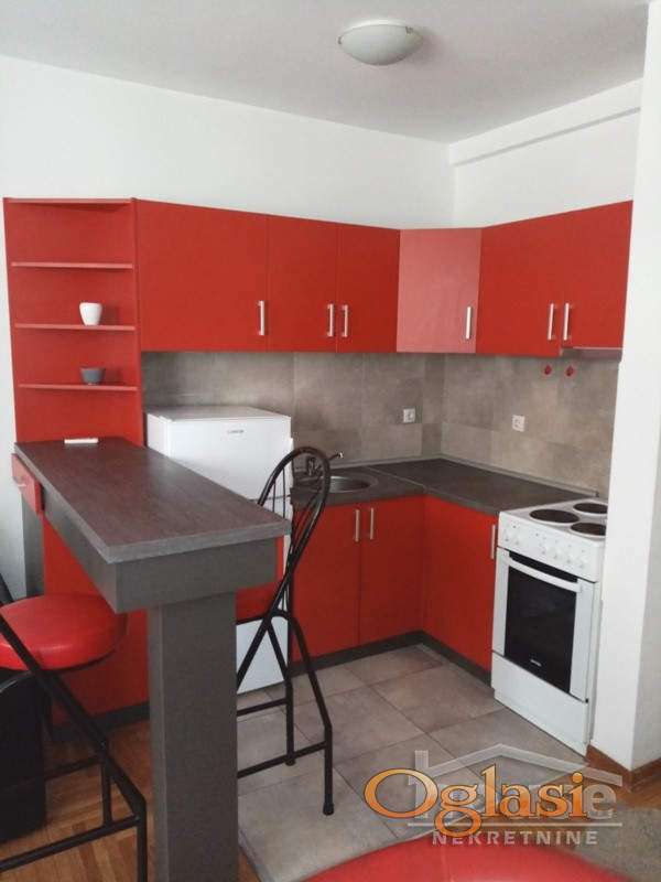 Stan se nalazi na visokom prizemlju novije stambene zgrade, ima 25m2, sastoji se iz komforne sobe, šankom odvojene kuhinje i kupatila.