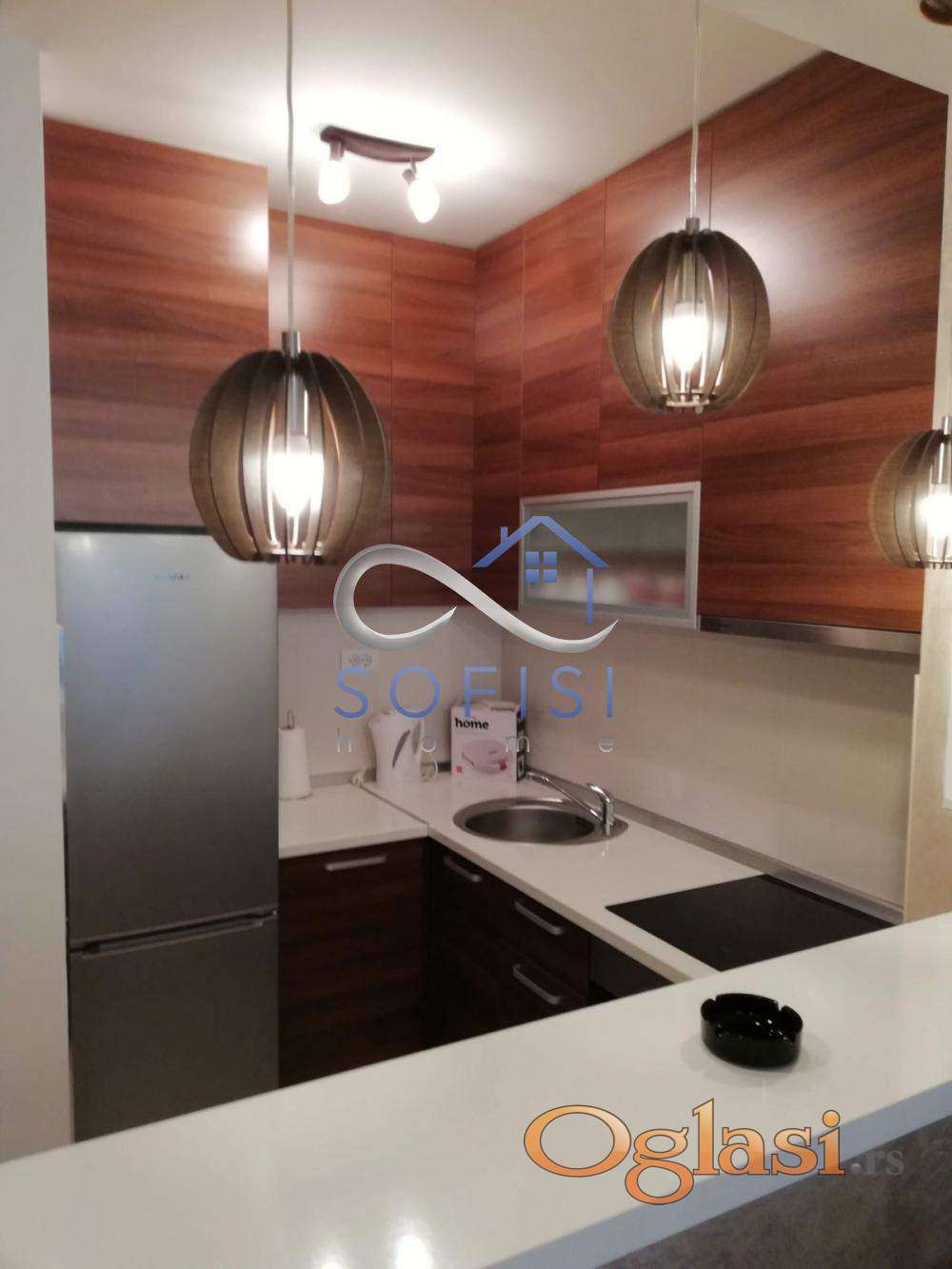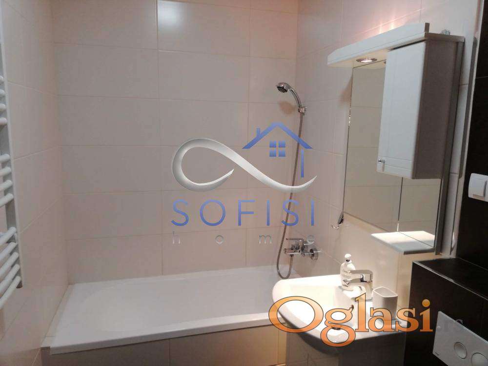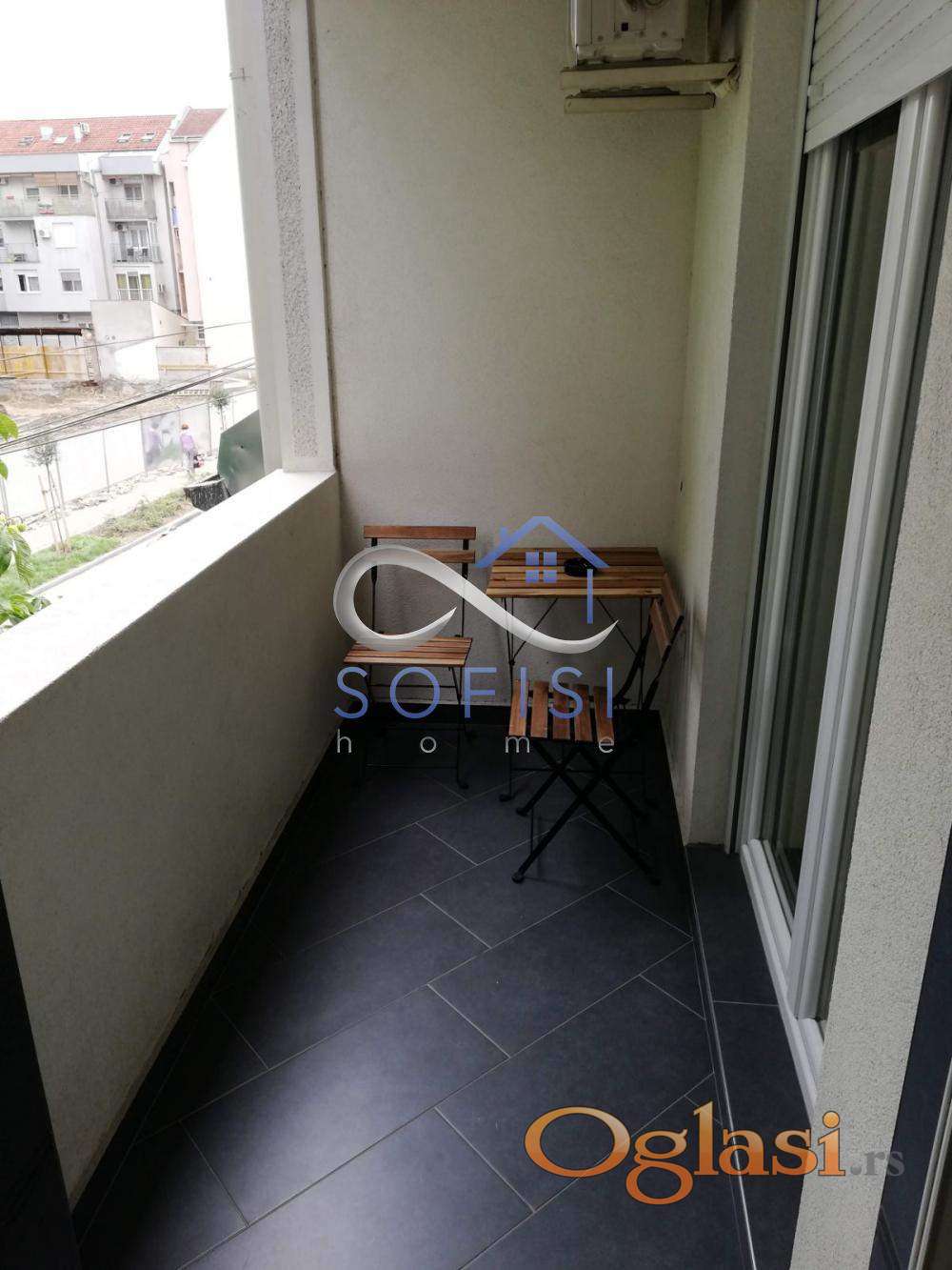 Novi Sad, Socijalno, ulica Hilandarska. Kompletno namešten, nov jednoiposoban stan u neposrednoj blizini centra grada. Ovaj lep stambeni prostor nalazi se na I spratu nove stambene zgrade sa liftom. Čine ga dnevni boravak sa trpezarijom i kuhinjom, spavaća soba, mali ulazni hodnik, kupatilo sa kadom i veš mašinom i terasa sa izlazom iz obe sobe. Ulično orijentisan. Centralno grejanje na kalorimetar - plaćanje u grejnoj sezoni po potrošnji. Mašina za pranje i sušenje beša, mašina za pranje posuđa, televizor, klima... Useljiv odmah.