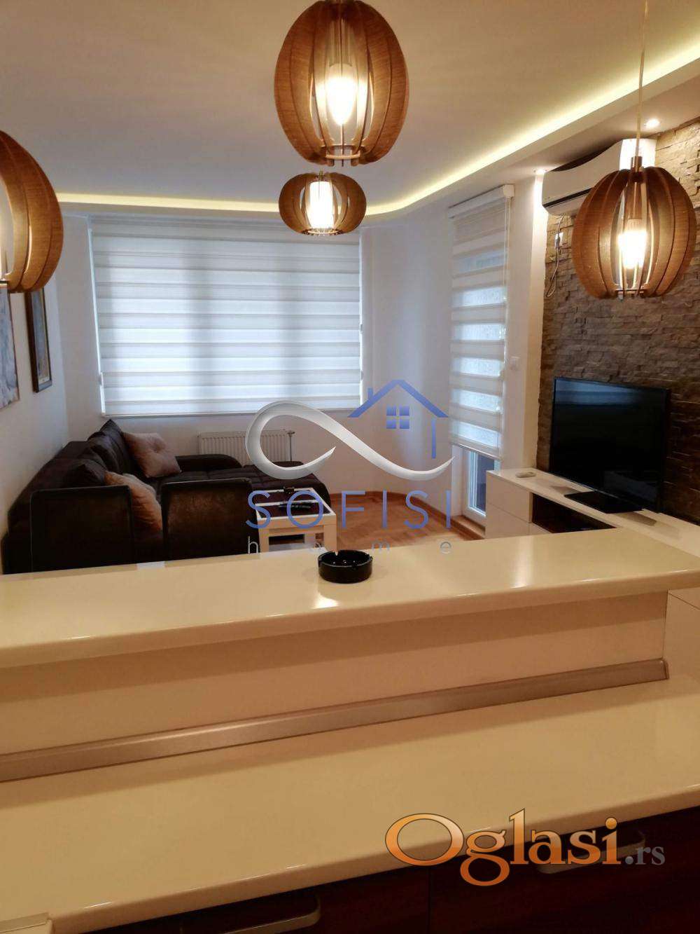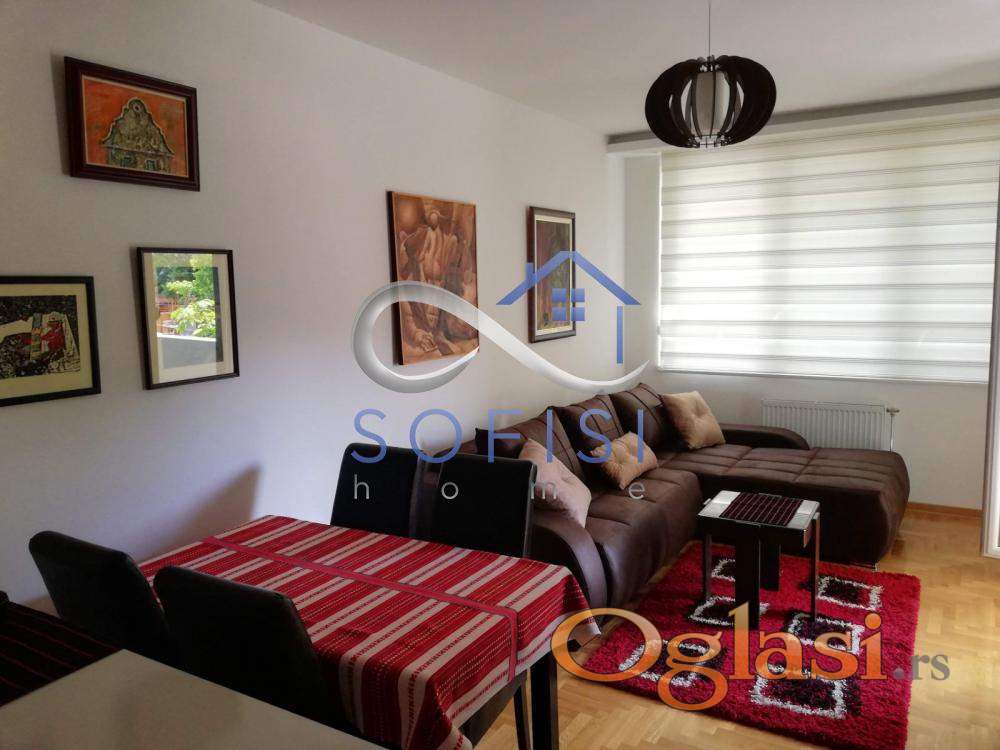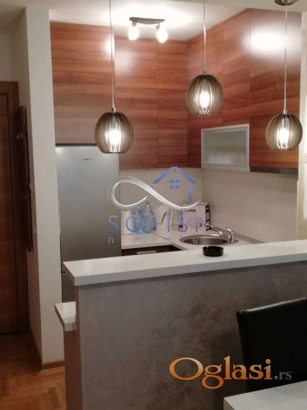 Novi Sad, Socijalno, ulica Hilandarska. Kompletno namešten, nov jednoiposoban stan u neposrednoj blizini centra grada. Ovaj lep stambeni prostor nalazi se na I spratu nove stambene zgrade sa liftom. Čine ga dnevni boravak sa trpezarijom i kuhinjom, spavaća soba, mali ulazni hodnik, kupatilo sa kadom i veš mašinom i terasa sa izlazom iz obe sobe. Ulično orijentisan. Centralno grejanje na kalorimetar - plaćanje u grejnoj sezoni po potrošnji. Mašina za pranje i sušenje beša, mašina za pranje posuđa, televizor, klima... Useljiv odmah.