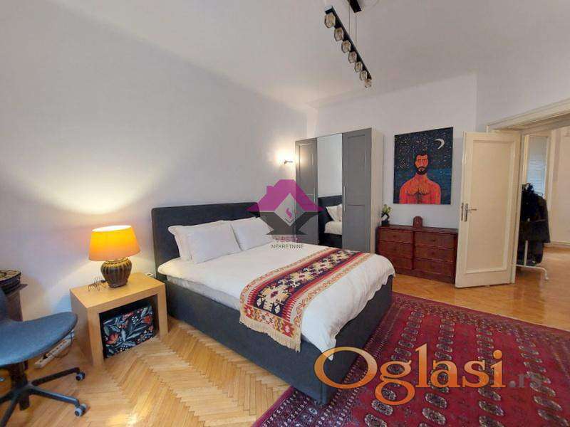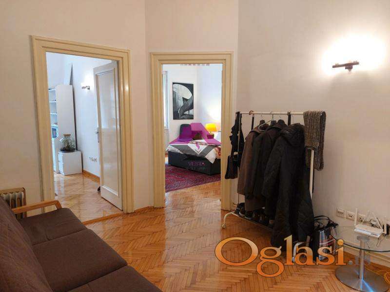 Salonski stan u strogom centru Beograda, u pešačkoj zoni, na 50m od Trga Republike i Narodnog pozorišta, u mirnoj ulici u zaleđini Narodnog muzeja.