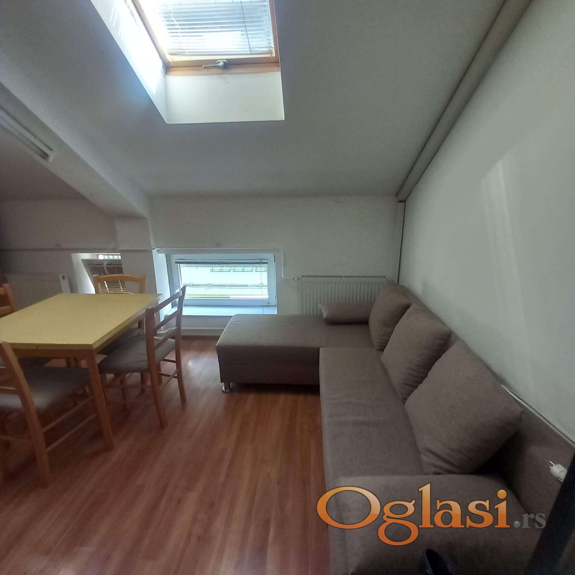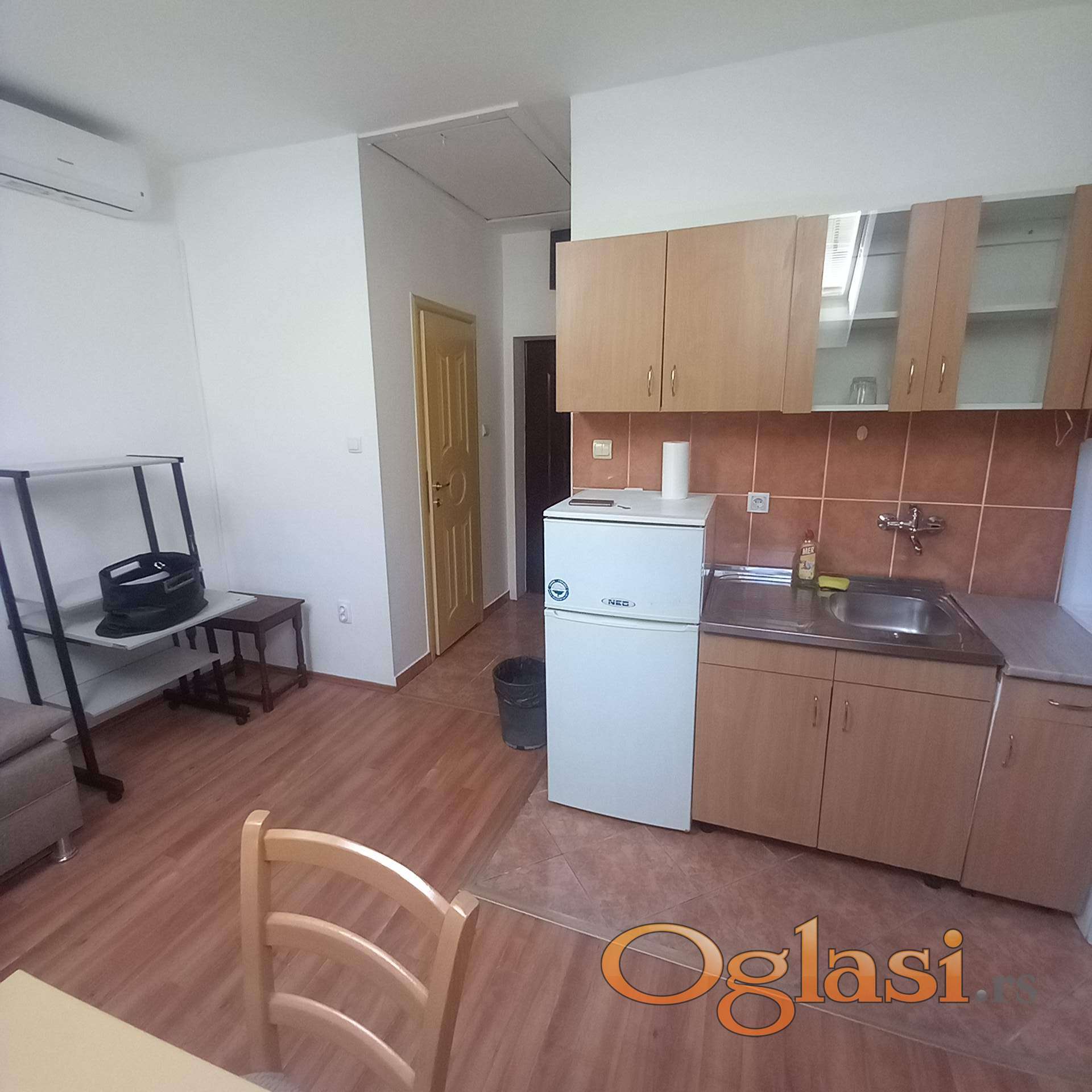Uredan i svetao stan bez terase, ulično orijentisan. Opremljen kuhinjskim elementima i belom tehnikom. Veš mašina u kupatilu.