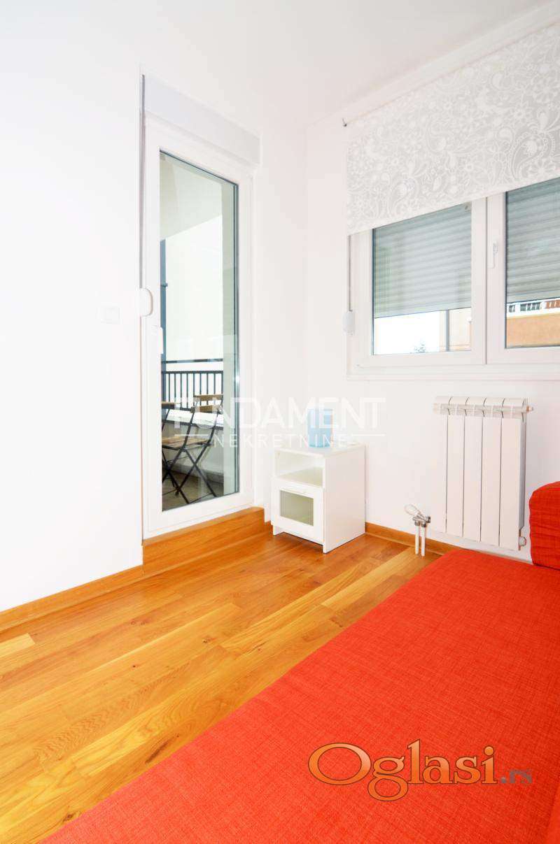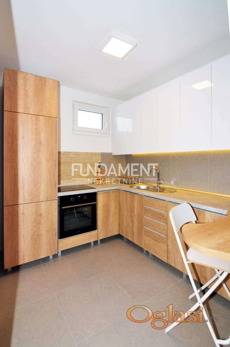 Odličan stan sa garažom, u novogradnji sa liftom i centralnim grejanjem, kompletno namešten i opremljen tehnikom, na centralnoj lokaciji na Lekinom brdu.