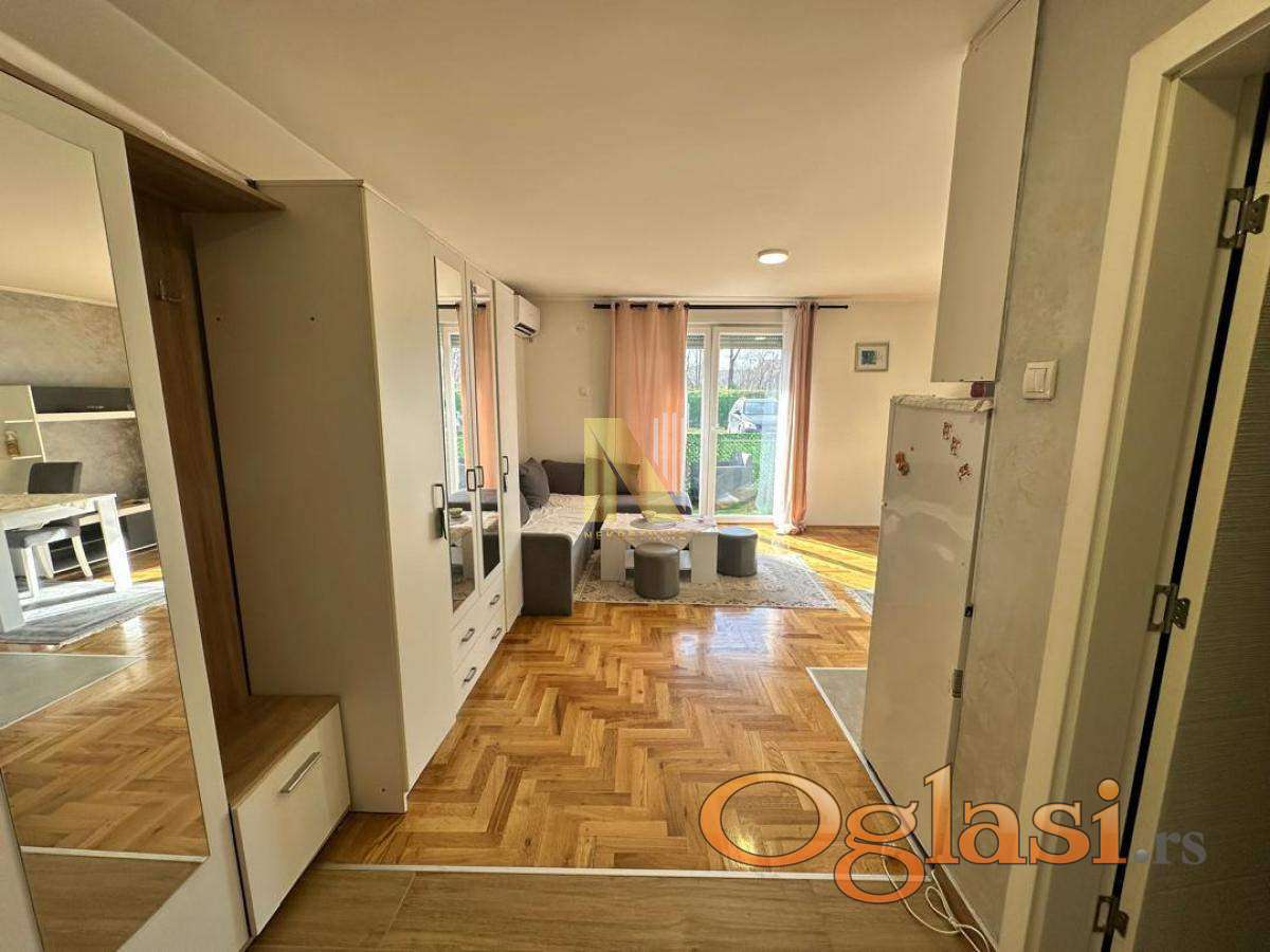 Svetao stan sa velikom terasom, grejanje na inverter klimu, niski mesečni troškovi.