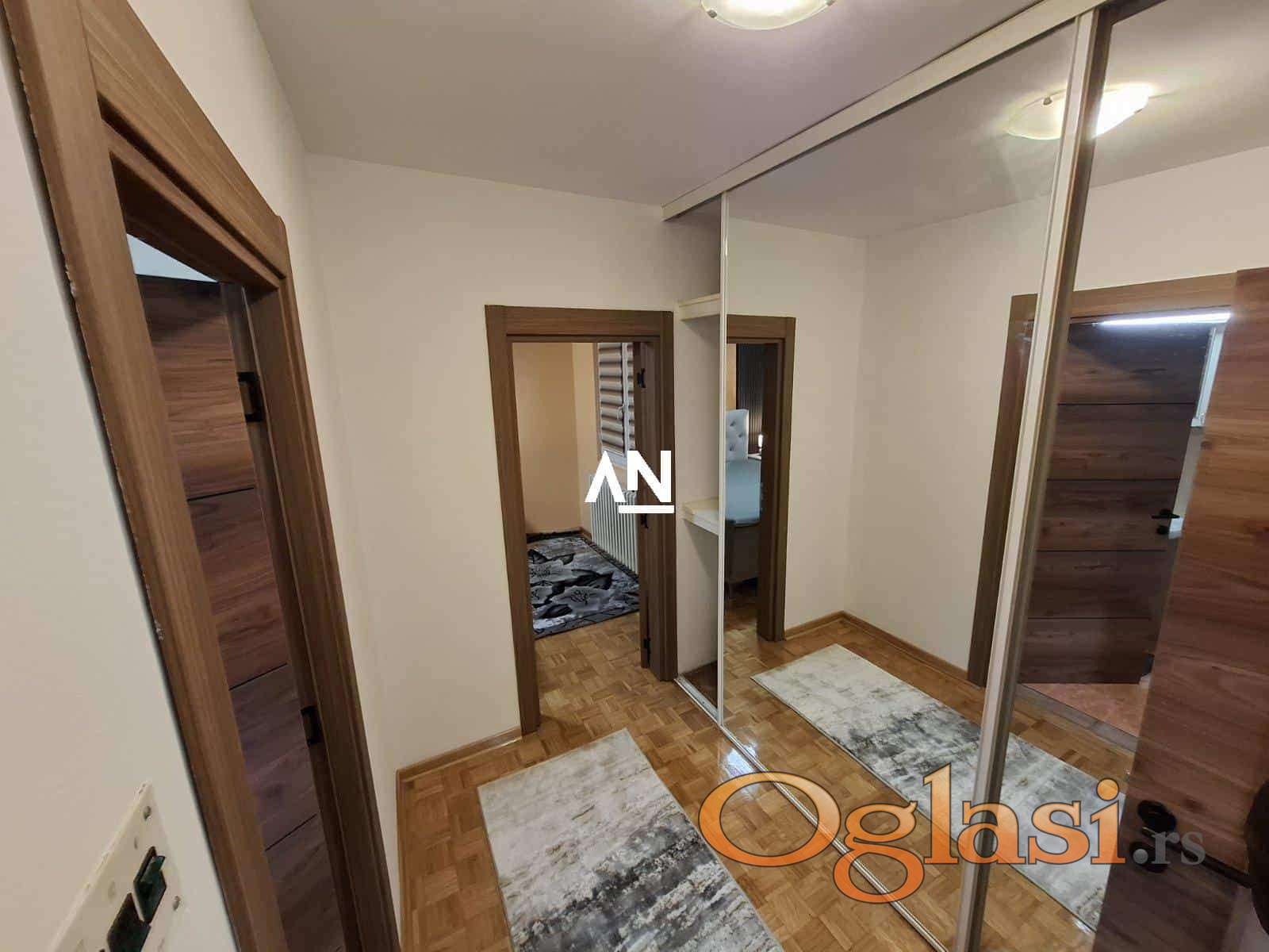 Prostorije: predsoblje, dnevni boravak, kuhinja sa trpezarijom, spavaća soba, kupatilo, zastakljena lođa. Centralno grejanje. Slobodan parking oko zgrade. Kućni ljubimci nisu dozvoljeni. Stan se izdaje isključivo na duži period.