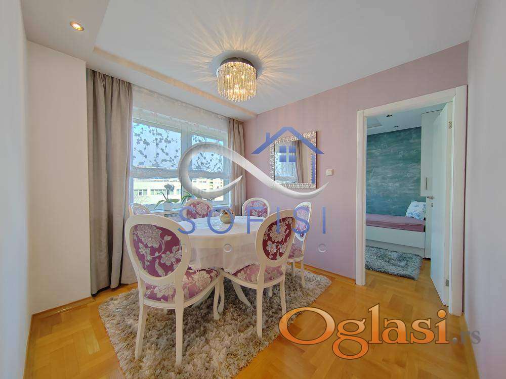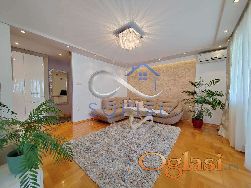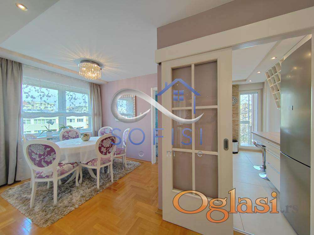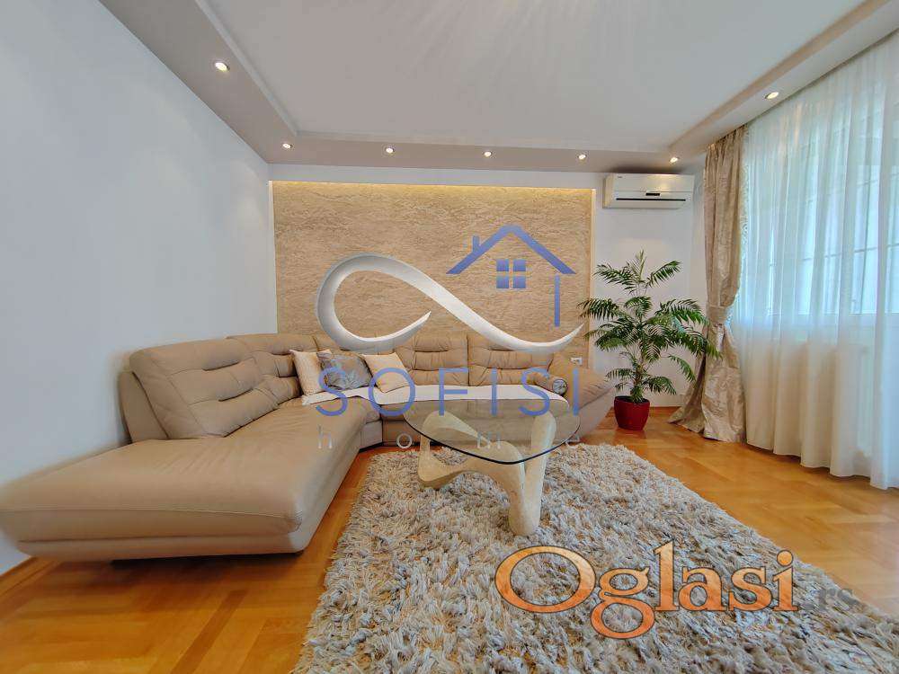 Novi Sad, Liman III, ulica Balzakova (kod Doma zdravlja). Izuzetno lepo namešten i dizajniran, komforan četvorosoban stan na najlepšoj lokaciji za stanovanje. Blizina Limanskog parka i pijace, niza objekata uslužne delatnosti, osnovne škole, vrtića, dečijih igrališta... Ovaj veoma svetao stambeni prostor karakterišu kvalitetan nameštaj i bela tehnika, odličan raspored prostorija i doplina doma. Nalazi se na IV spratu dobro održavane zgrade starije gradnje sa liftom. Čine ga prostran i svetao dnevni boravak sa izlazom na lepo uređenu, veliku terasu sa ostavom, odvojena trpezarija, fizički, potpuno odvojena, savremeno opremljena kuhinja sa izlazom na malu lođu, tri spavaće sobe, veliko kupatilo sa tuš kabinom i toalet posebno. Mnogo prostora za odlaganje - svi hodnici su iskorišćeni za velike ugradne garderobere. Idealan za porodično stanovanje. Bez rezervisanog parking mesta. Protočna topla voda. Izdavanje na vremenski period od minimum 12 meseci ozbiljnim, zaposlenim zakupcima. Useljiv odmah.